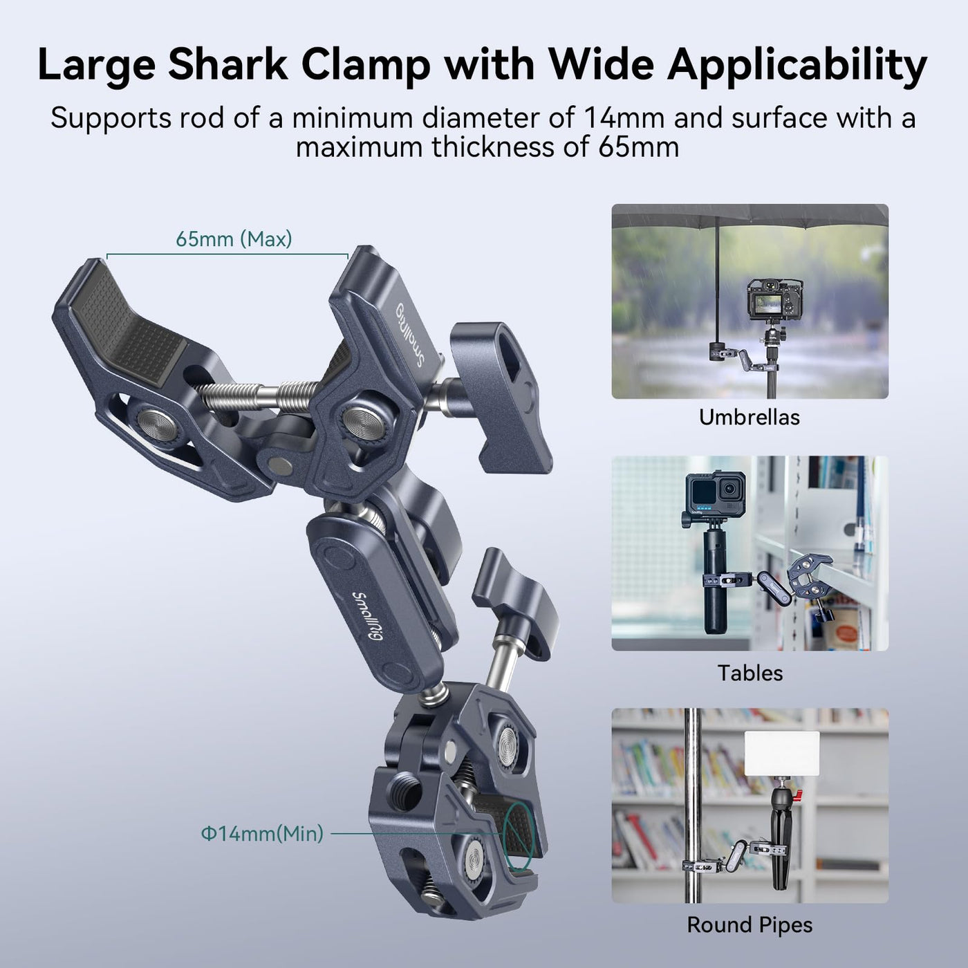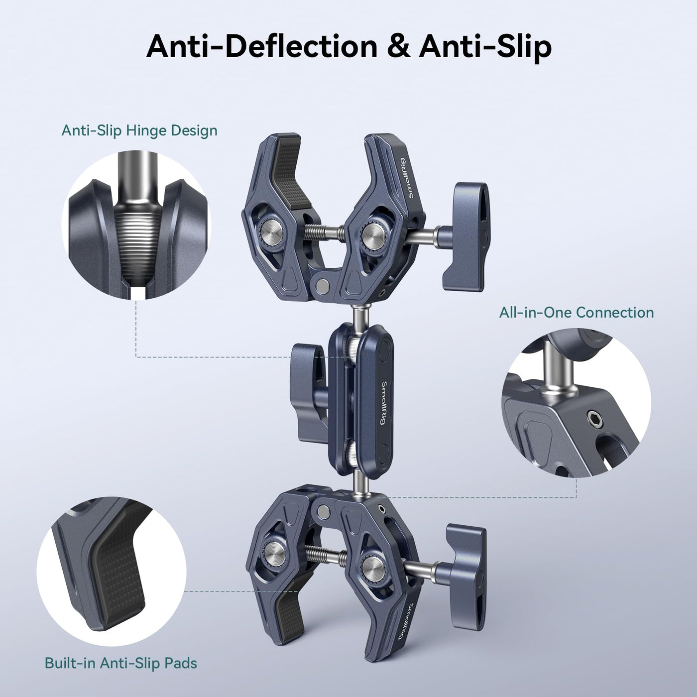 Smallrig Super Clamp Double Camera Clamp - 4103 Key Features 1. Made Of Aircraft-Grade Aluminum Alloy And Stainless Steel, Strong And Durable; 2. Load Capacity
