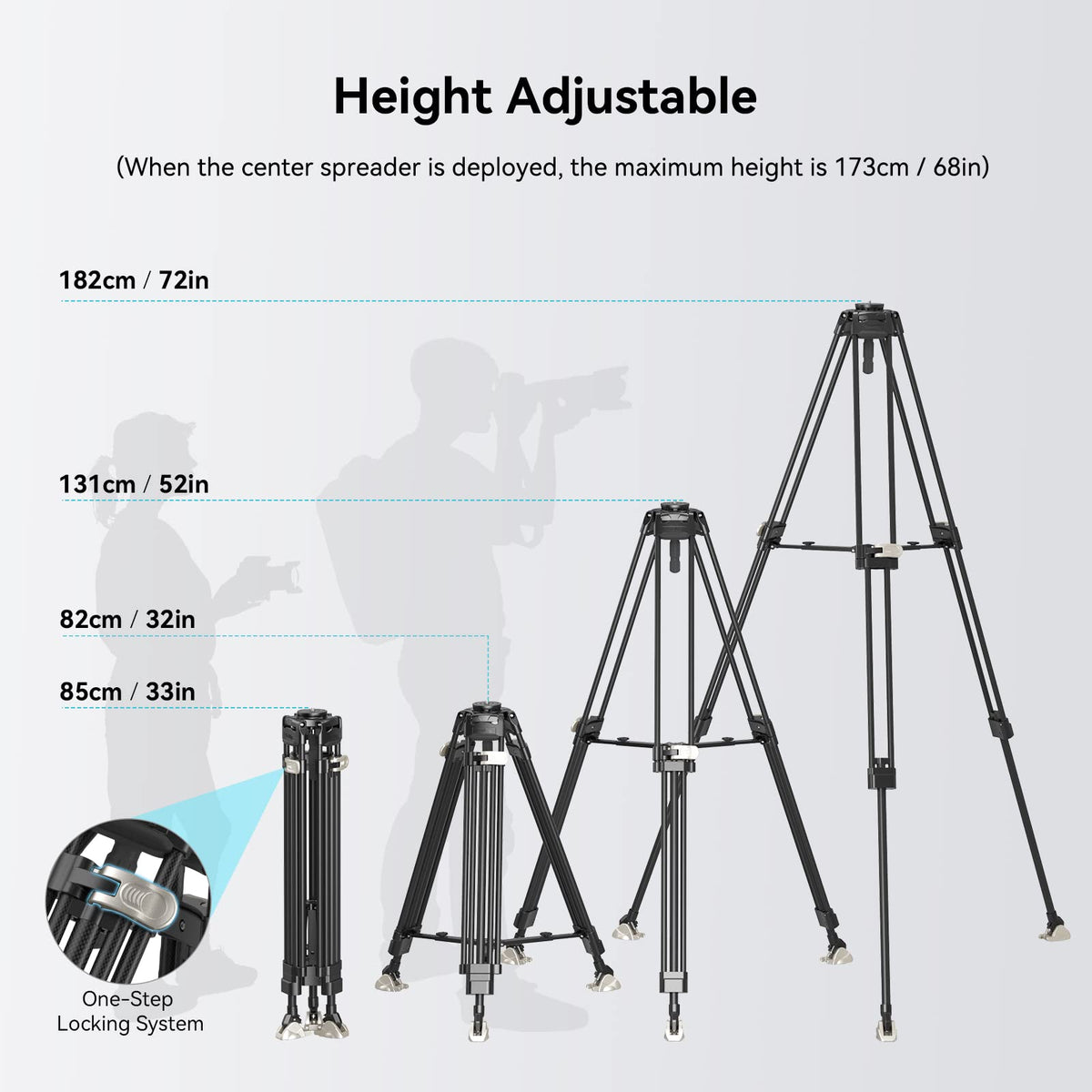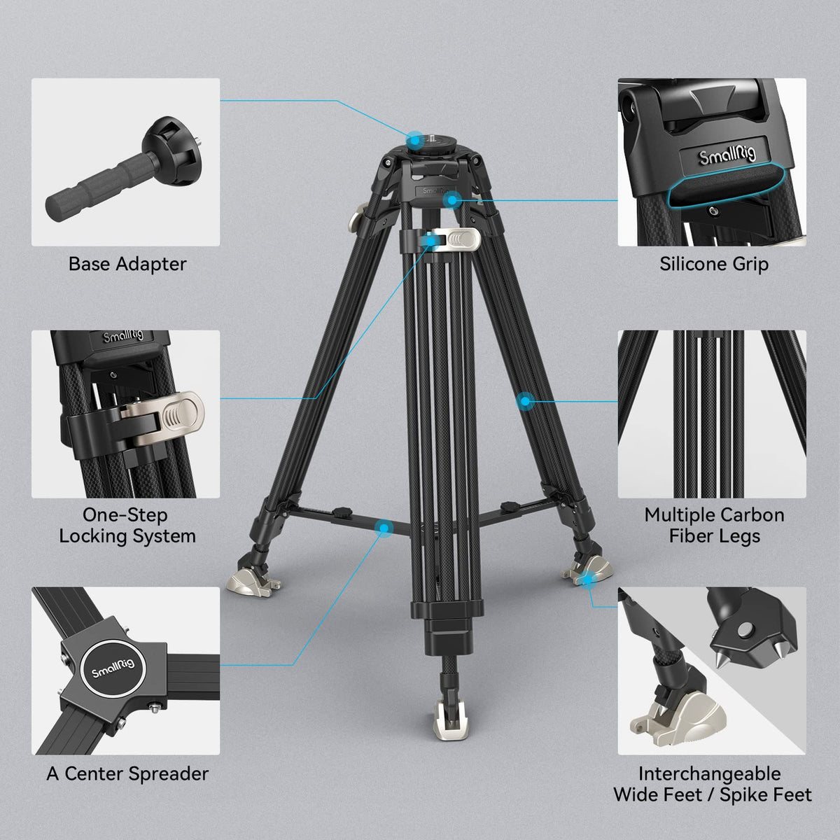 Smallrig Freeblazer Heavy-Duty Carbon Fiber Tripod 4167 Key Features: 1.One-Key Locking, Quick Height Adjustment 2.Lightweight And Sturdy Carbon Fiber Legs With A Large Load Capacity 3.Interchangeable Wide Feet And Spike Feet Compatibility: Universal Note: 1.Not Sand-Resistant Or Dust-Resistant; 2.Max Payload: 25Kg; 3.Please Lock The Middle Spreader Before Using This Tripod; 4.Equipped With A F75Mm Bowl Base; Specifications: Product Dimensions: 850.0 X 165.0 X 165.0Mm Package Dimensions: 175.0 X 175.0 X 1040.0Mm Product Weight: 3.7 0.1Kg Package Weight: 5.0 0.1Kg Adjustable Height: 79.0~182.0Cm Bowl Base Diameter: 75.0Mm Load Capacity: 25Kg Material(S): Carbon Fiber, Aluminum Alloy, Pom, Stainless Steel, Silicone