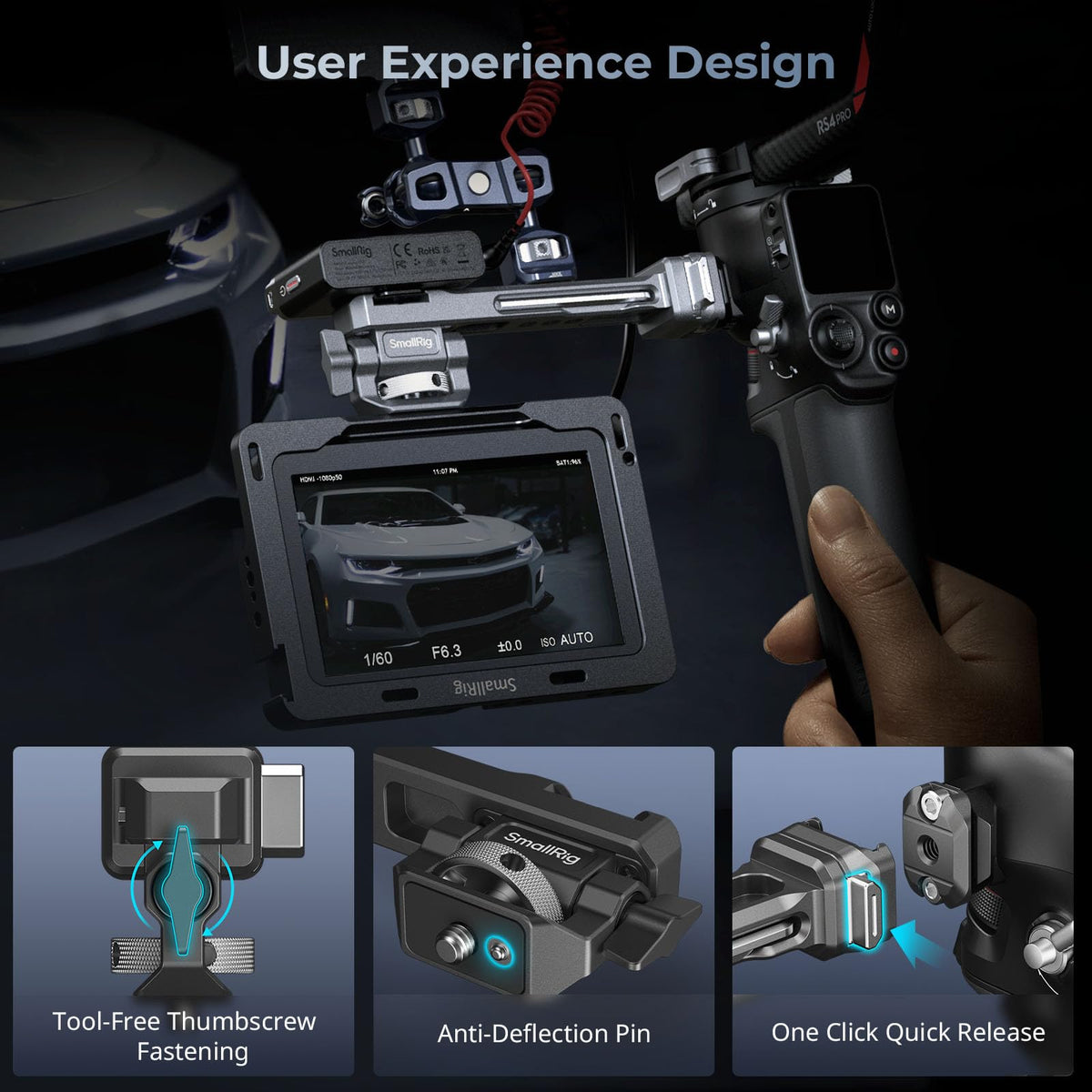 Smallrig Hawklock Quick Release Adjustable Camera Monitor Mount, Nato Rail And Cold Shoe, Tilt 165 Adjustable, For Dji Rs 4 Mini