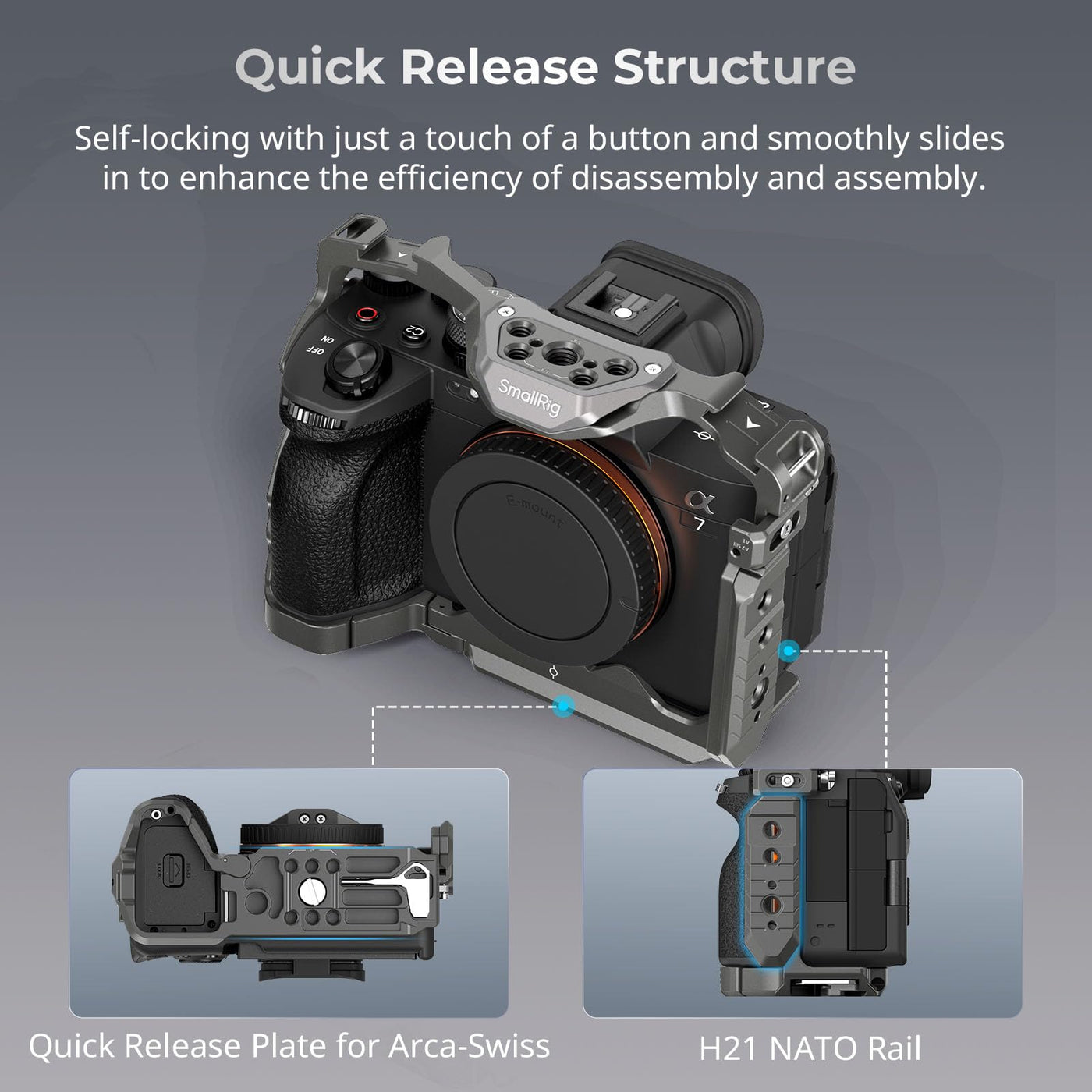 Smallrig Hawklock Quick Release Cage Kit For Sony Alpha 7R V/Alpha 7 Iv/Alpha 7S Iii, With Top Handle, Side Handle, Monitor Moun