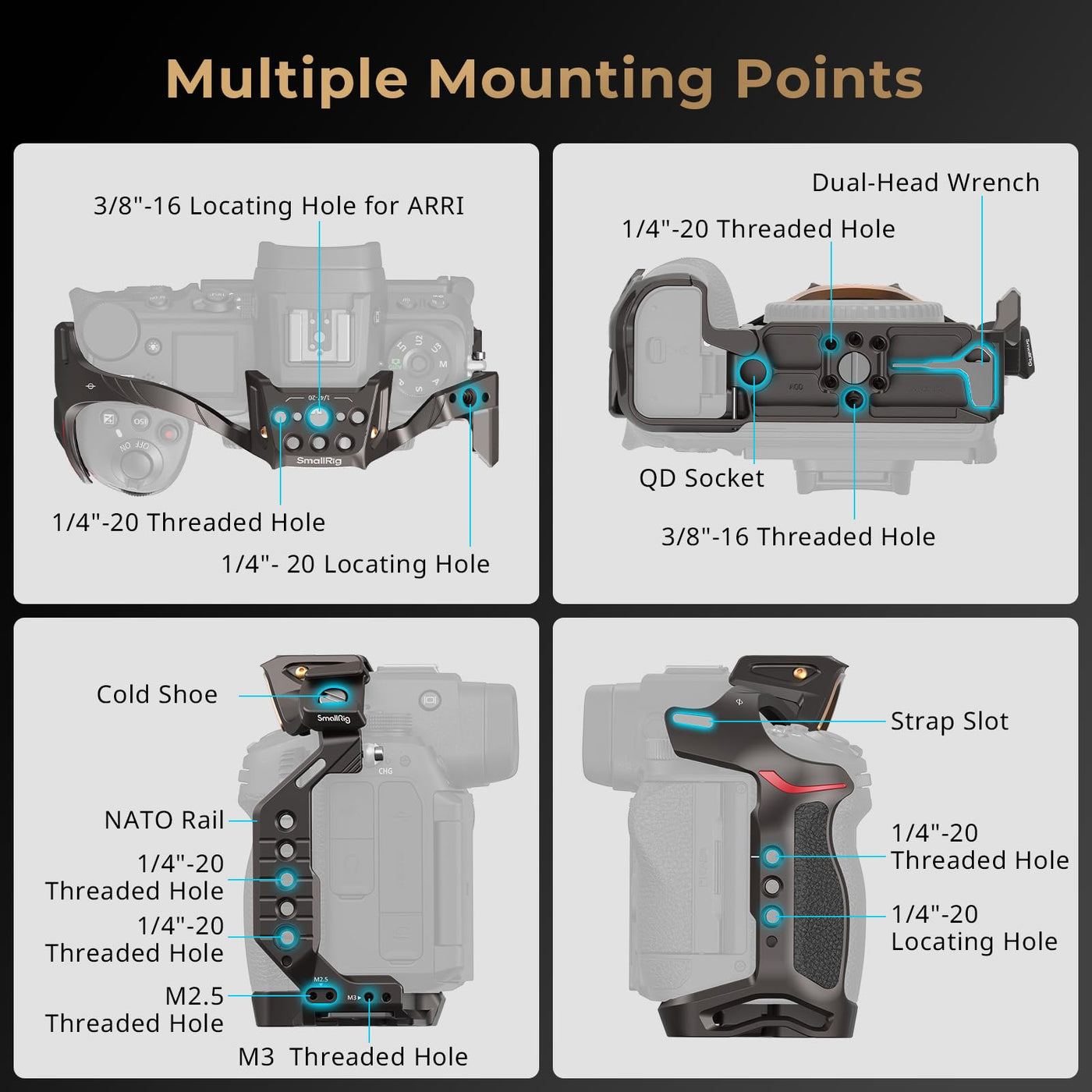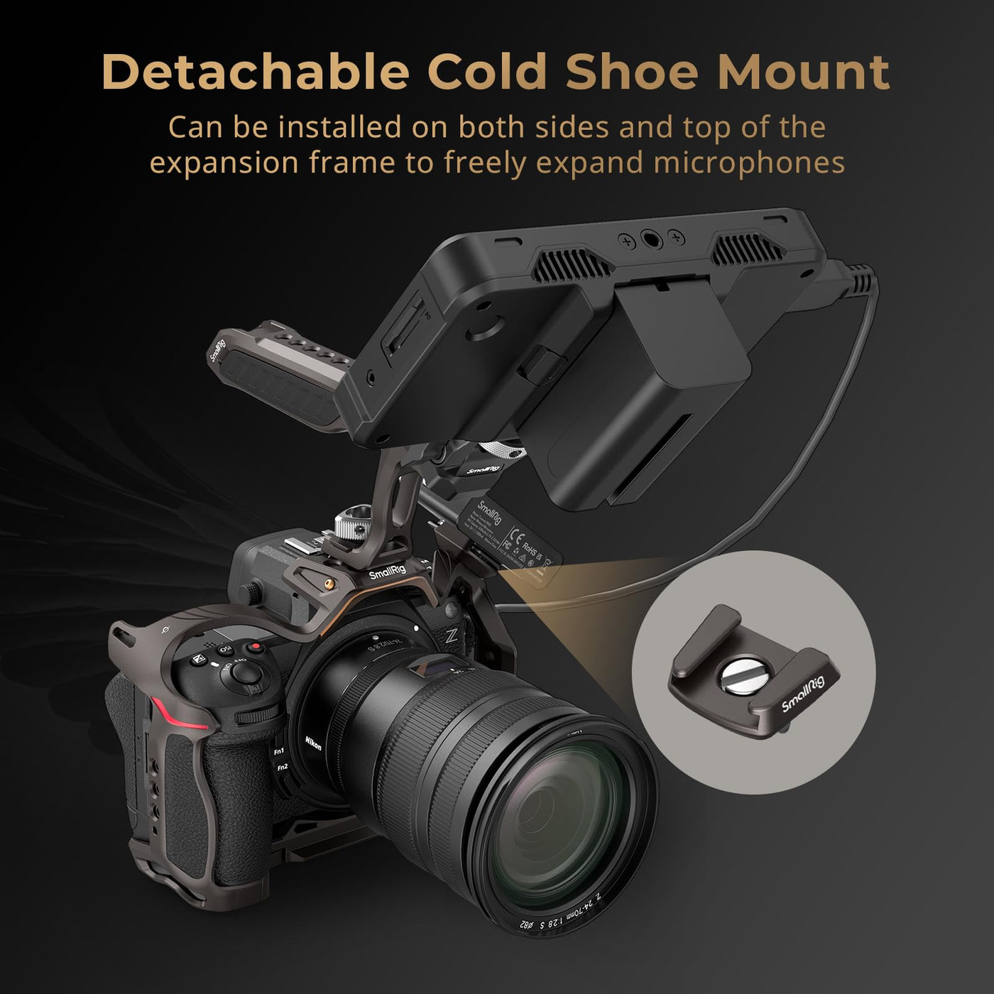 Smallrig Night Eagle Cage Kit For Nikon Z 6Iii 4522 Key Features: 1. Brand-New Design And Coloring: Gunmetal Brown Color Scheme With Sleek Curves Embellished With Golden Lines; 2. Perfectly Repeats For Nikon Z 6Iii Elements: The Gold Ring, Red Marks, And Vintage Leather Finish; 3. Press-And-Flip Design Of The Cable Clamp Allows For Easy Access To The Interfaces Without The Need For Disassembly; 4. Detachable Cold Shoe Mount Allows For Extra Led Video Light Or Microphone; 5. Ergonomic Handle Features Built-In Hidden Storage For 1/4-20 Screws, 3/8-16 Screws, And M2.5 Screws; 6. Equipped With Multiple Expansion Interfaces, Such As 1/4-20 Threaded Holes, 1/4-20 Locating Holes, 3/8-16 Threaded Holes, Locating Holes For Arri, Nato Rails, Qd Mounts, And Wrist/Shoulder Strap Holes, Offering Versatility For Various Shooting Scenarios. Note: 1. Please Remove The D-Rings On The Sides Of The Camera Before Installing This Cage. Compatibility: For Nikon Z 6Iii Package: Cage X 1 Cold Shoe Mount X 1 Usb-C Cable Clamp X 1 Top Handle X 1 User Manual X 1 Specifications Product Dimensions: 174.4 X 145.5 X 185.7Mm / 6.9 X 5.2 X 7.3In Package Dimensions: 122.0 X 70.0 X 168.0Mm / 4.8 X 2.7 X 6.6In Product Weight: 369.0 5.0G / 13.0 0.2Oz Package Weight: 469.0 5.0G / 16.5 0.2Oz Material(S): Aluminum Alloy, Silicone, Stainless Steel