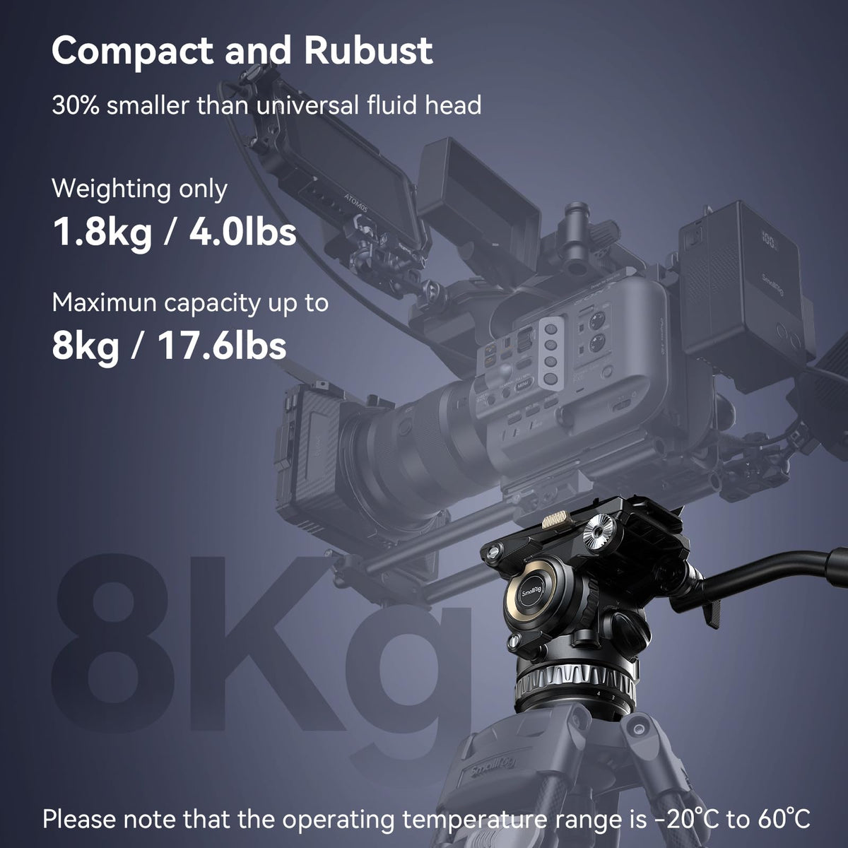Smallrig Ph8 Professional Fluid Video Head With 6-Step Counterbalance, 4-Step Pan/Tilt Hydraulic Damping, Detachable Handle, Qr