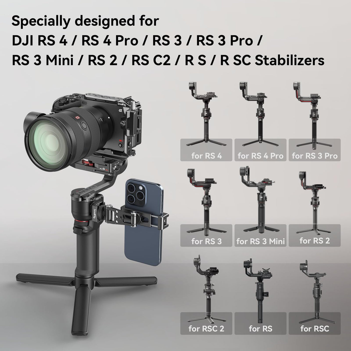 Smallrig Phone Support For Dji Stabilizers, Adjustment Phone Mount Adapter With 1/4-20 Threaded Hole, Cold Shoe For Dji Rs 4 /Rs
