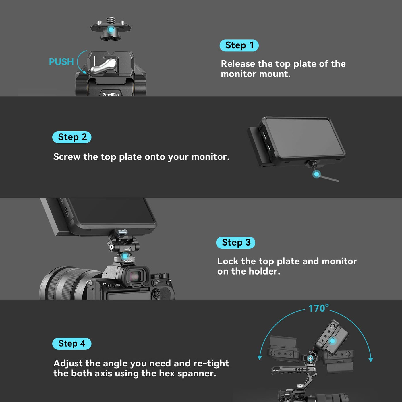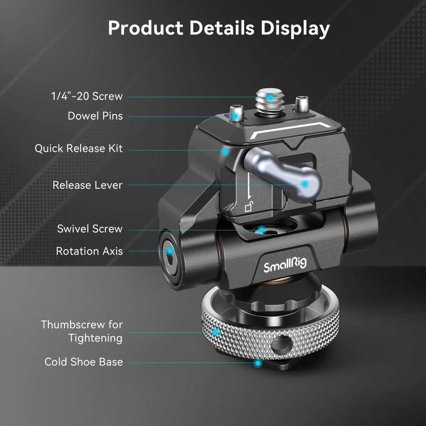 Smallrig Quick Release Camera Monitor Mount With Cold Shoe, Supports Swivel 360 And Tilt 170 Adjustable, Drop-In Hawklock Camera