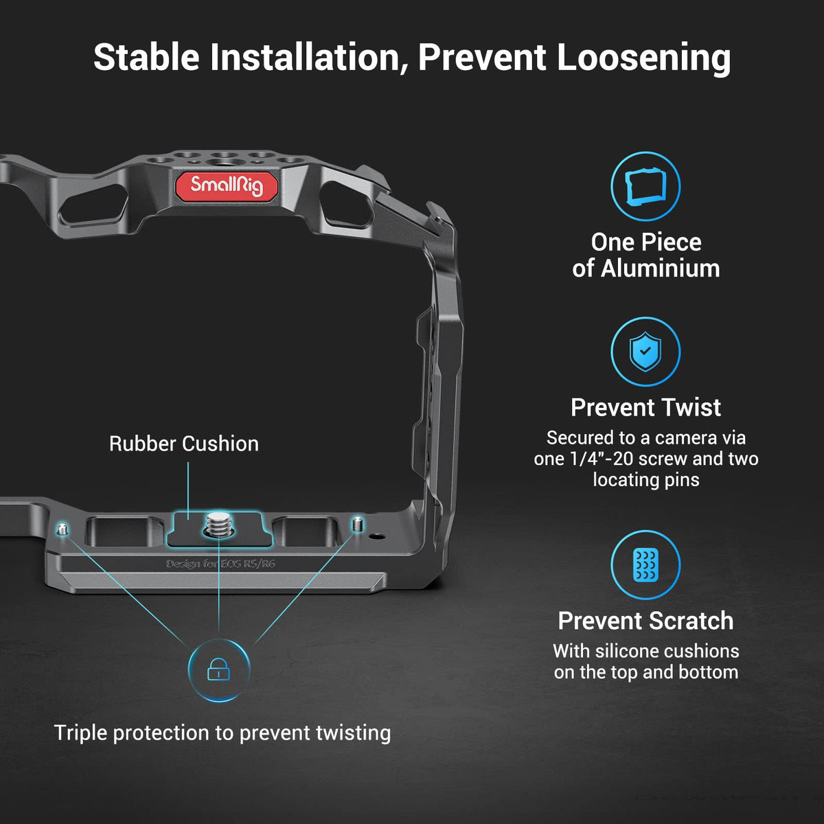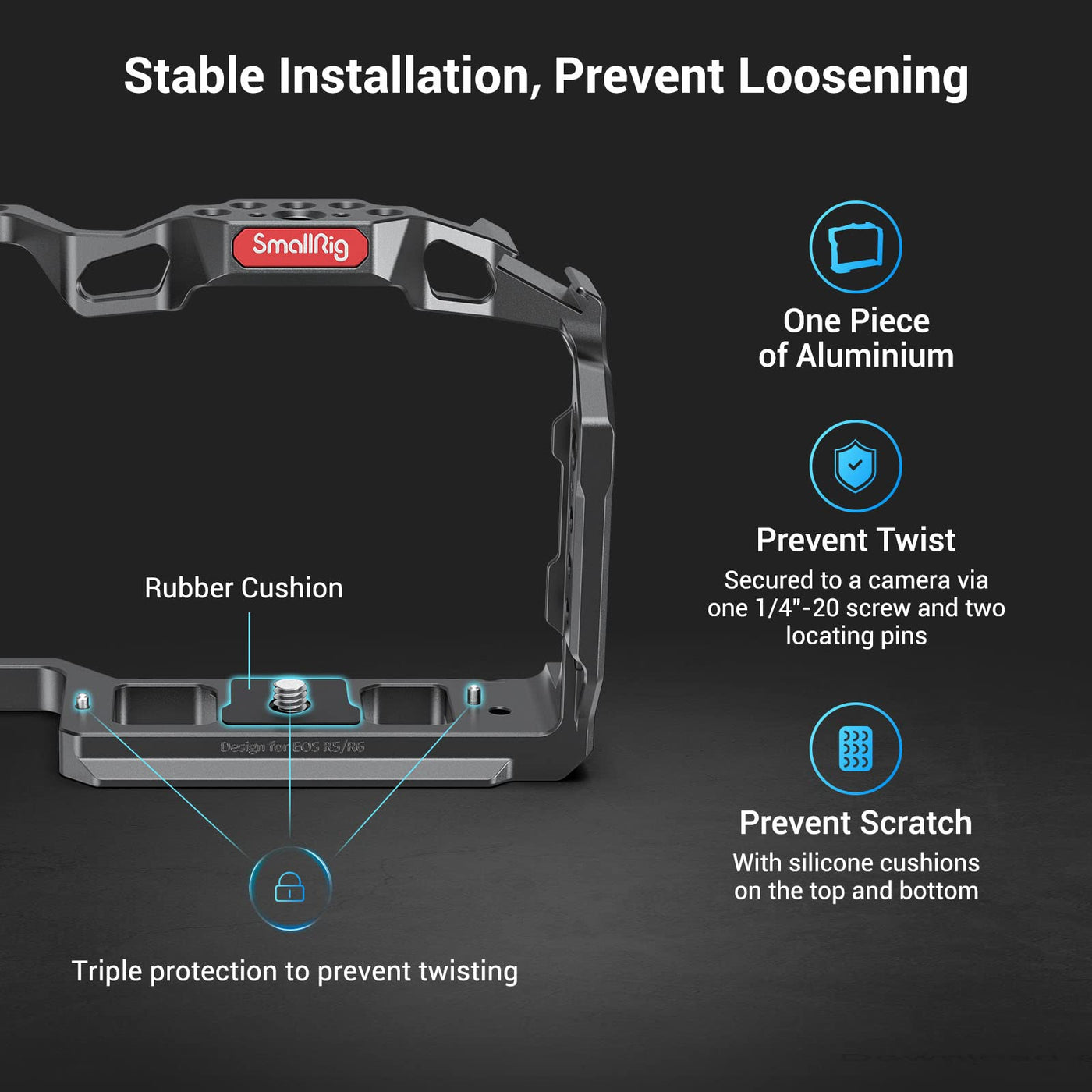 Smallrig R5 / R5 C / R6 Cage For Canon R5 R6 R5 C, Aluminum Alloy Dslr Rig Stabilizer With Cold Shoe, 1/4-20 And 3/8-16 Threaded