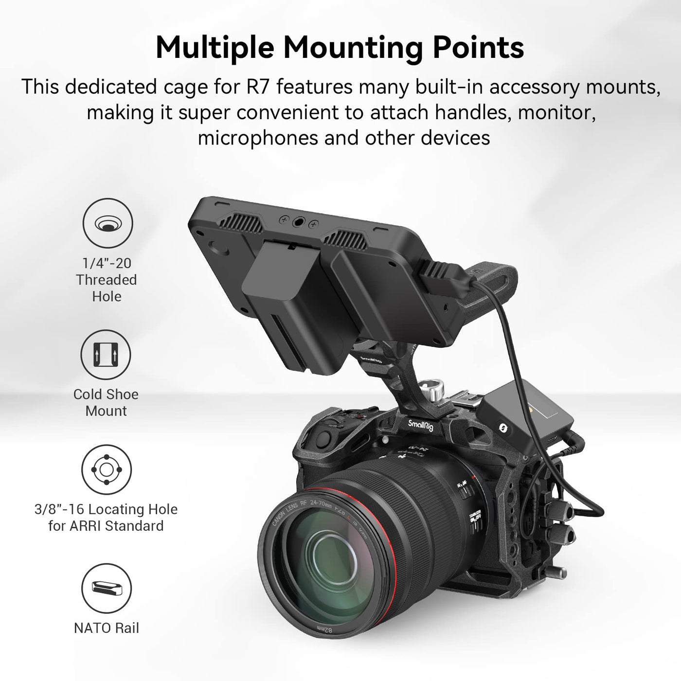 Smallrig R7 Cage For Canon R7, Aluminum Alloy R7 Cage With Quick Release Plate For Arca Stand, Cold Shoe, Nato Rail And Threaded