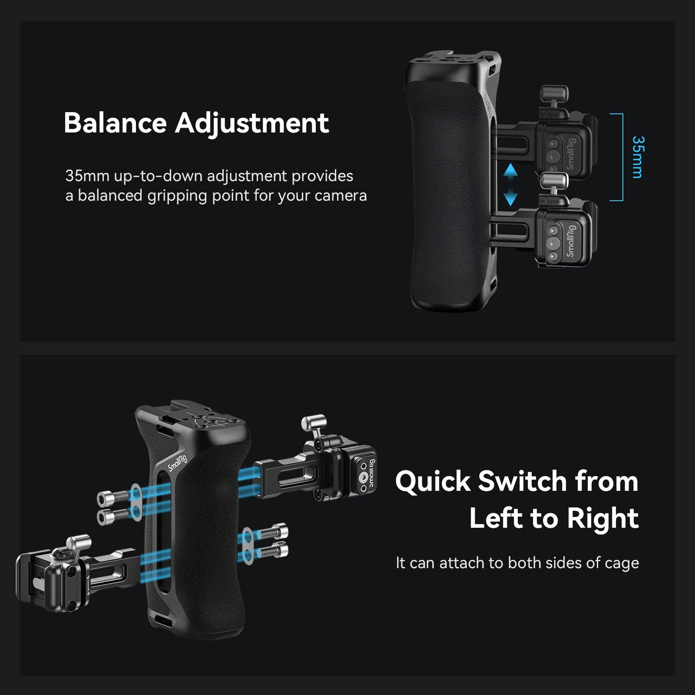 Smallrig Snap-On Nato Side Handle, Quick Lock Design, Up/Down Adjustable, Built-In Cold Shoe Mount, 1/4-20 Thread Hole, Wrist