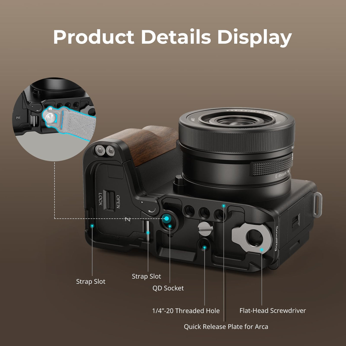 Smallrig Zv-E10 Ii L-Shape Plate With Wooden Handle, Handgrip For Sony Zv-E10 Ii, Built-In Quick Release Plate For Arca, 1/4-20