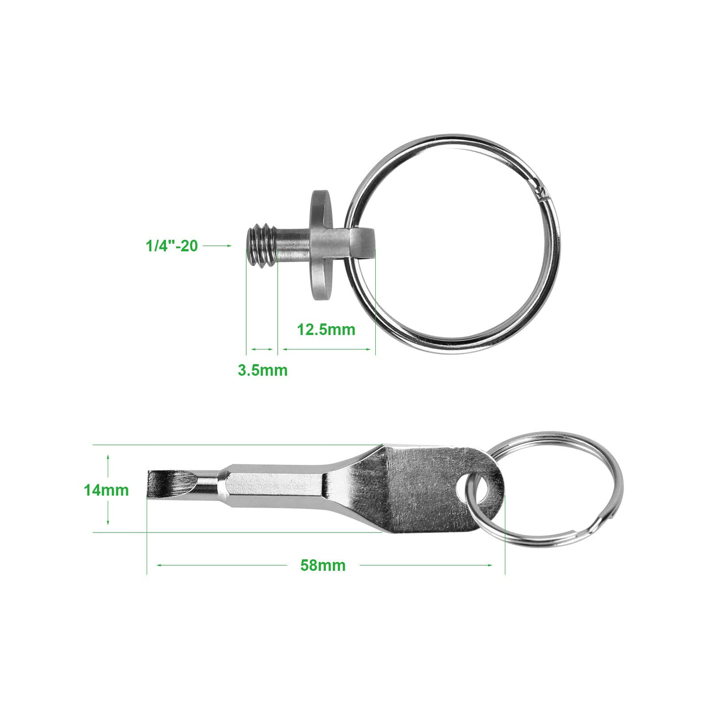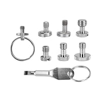 This Szrig Tripod Quick Release Screw Adapter Include One Slotted Screwdriver,One Slotted 3/8''-16 Screw(3/8''-16 X 13.5Mm),Three D-Ring 1/4''-20 Screw(1/4''-20 X 10; 1/4''-20 X 13; 1/4''-20 X 15),Three Slotted 1/4''-20 Screw(1/4''-20 X 11; 1/4''-20 X 13; 1/4''-20 X 13). Net Weight: 51G Package Included: 1 X 1/4''-20 & 3/8-16 Screw Pack For Tripod Screw Accessories(8 Pieces)