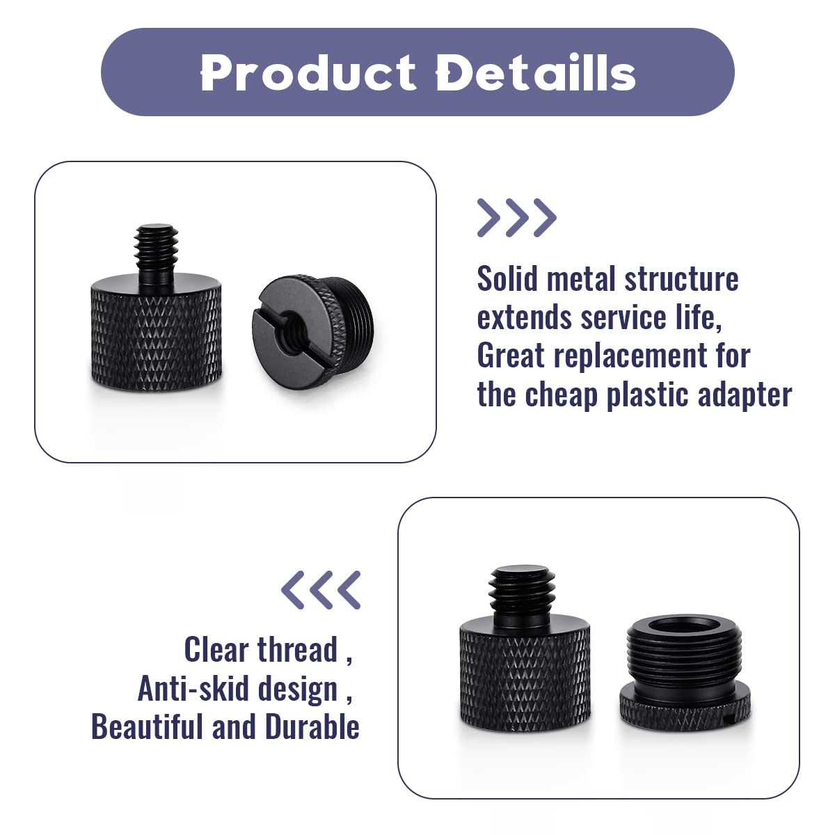 Q: Can these adapters be used with different microphone stands?A: Yes, the adapters are designed to be compatible with most standard microphone stands, making them versatile for various applications including mounting cameras, lights, and other photographic accessories.