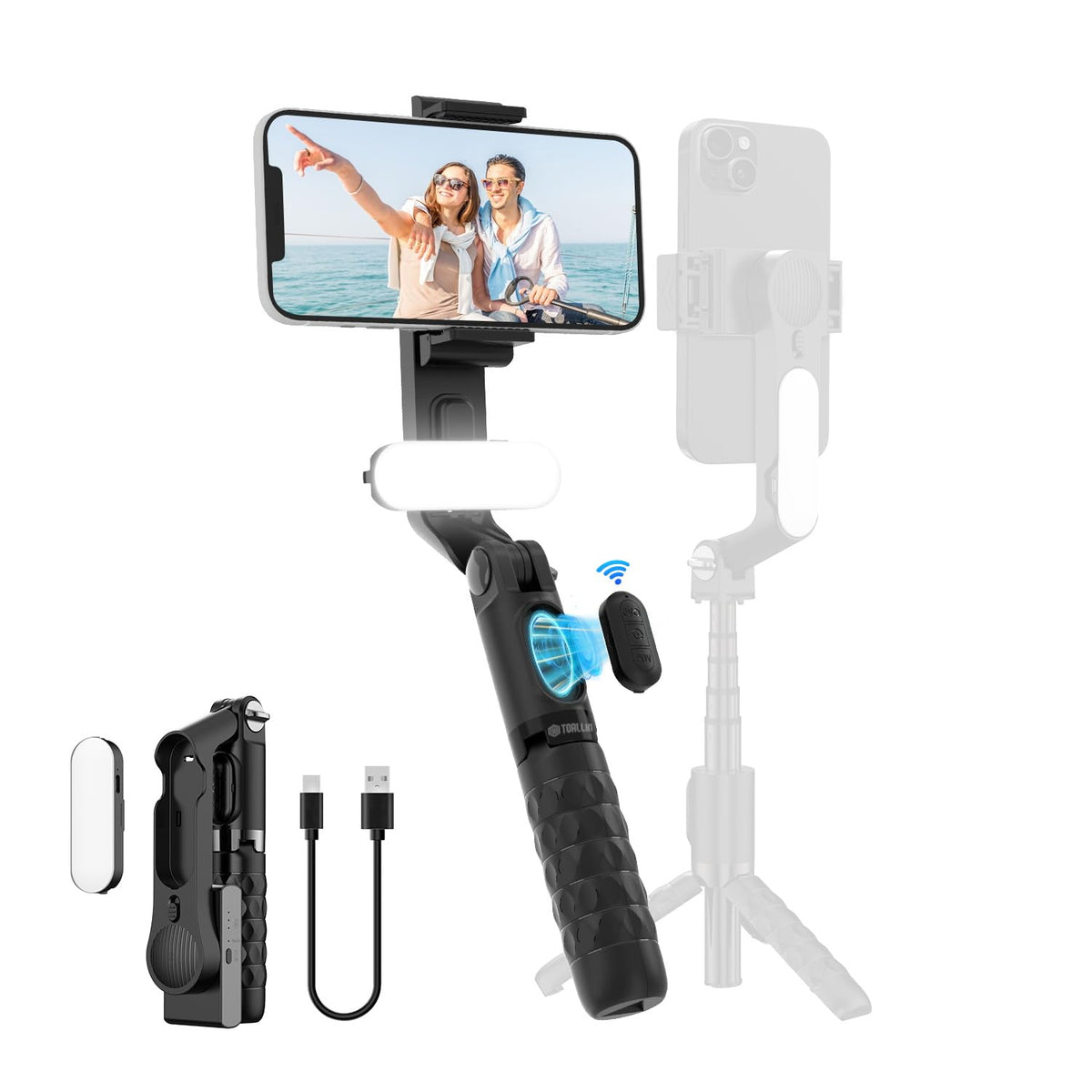 Toallin Gimbal Stabilizer For Smartphone, With Adjustable Fill Light, Remote Control, Retractable And Foldable Selfie Stick For