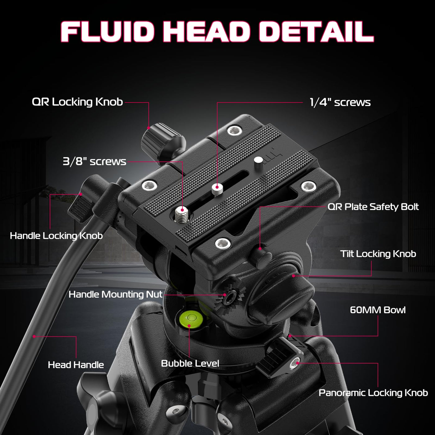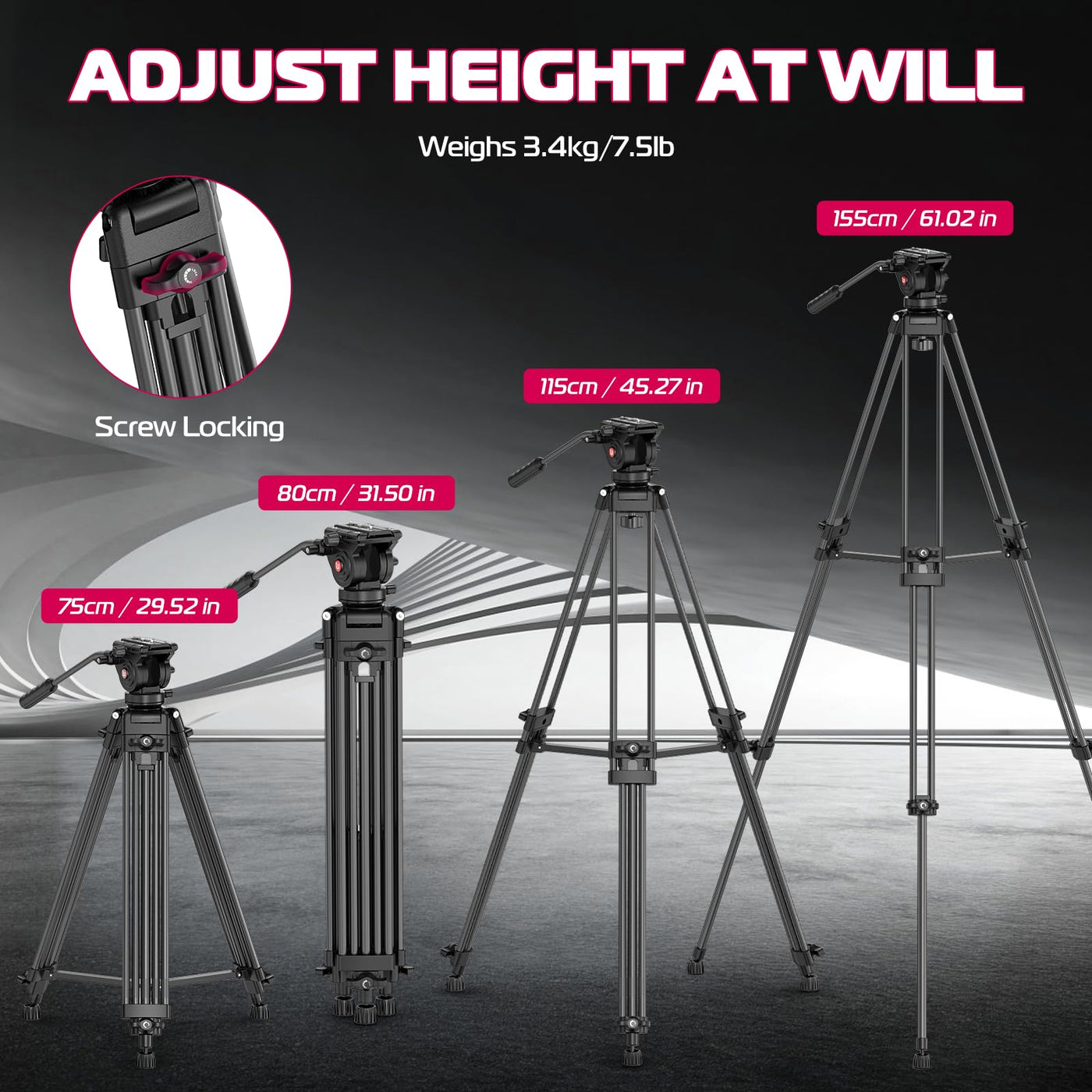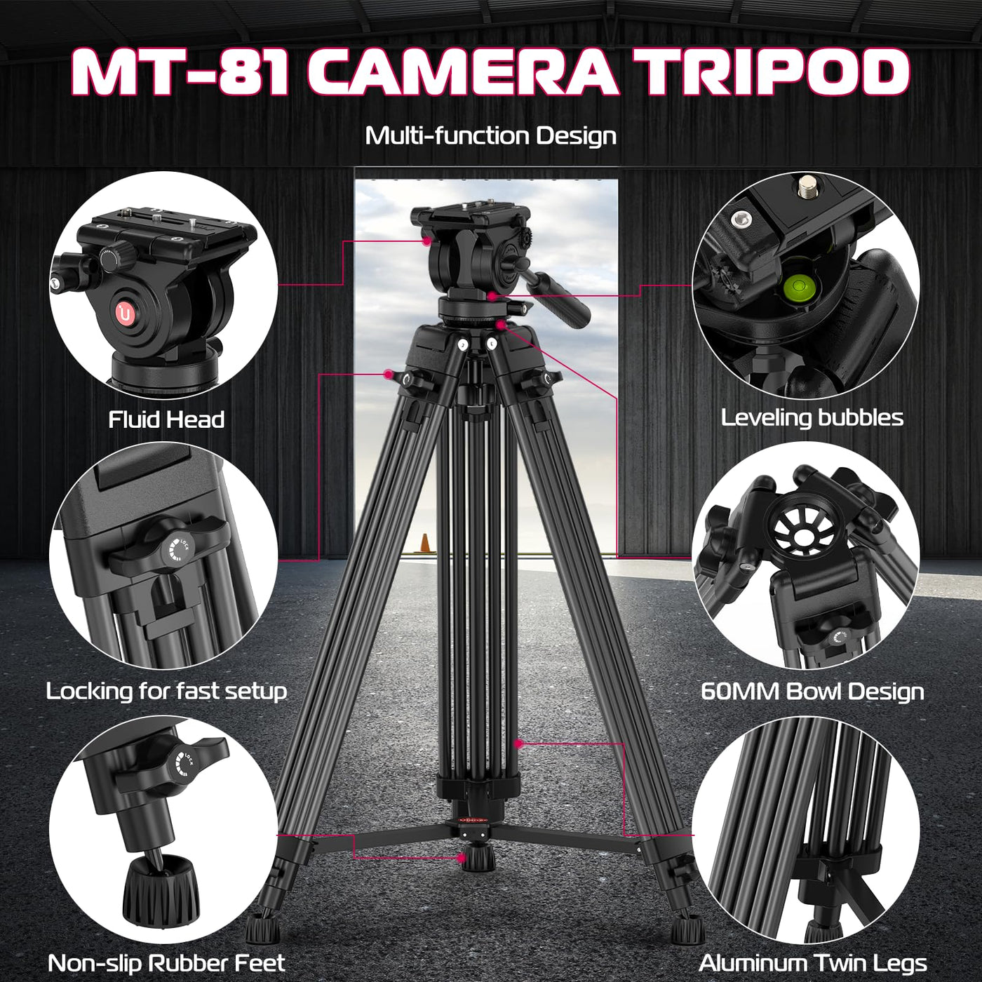 Ulanzi Mt-81 Camera Video Tripod With 360 Degree Fluid Head, 61Inch/155Cm Heavy Duty Aluminum Alloy Camera Tripod Stand, Quick Release Plate Compatible With Dslr Camcorder, Load Up To 17.6Lb/8Kg Ulanzi Mt-81 Camera Video Tripod ?Super Strong Aluminum Alloy Tripod?This Aluminum Alloy Double Tube Tripod Is Sturdy And Durable And Can Be Used In Different Shooting Environments. The Adjustable Bowl Seat At The Bottom Of The Fluid Head Makes It Stable On Most Surfaces, Meeting The Needs Of All Outdoor Travel Shooting. ?Adjustable Height?The Sturdy Knob Lock Allows Us To Extend And Secure The Legs Conveniently And Easily. Use This Locking Mechanism To Adjust The Height Of The Tripod From 29.5 Inches/75 Cm To 61 Inches/155 Cm. Folds The Tripod Down To 31.5 Inches/80 Cm, Making It Super Easy To Store And Transport. ?Standard 1/4-Inch And 3/8-Inch Screws?Aluminum Alloy Camera Tripod With Large Quick-Release Plate With 1/4-Inch And 3/8-Inch Screws Is Compatible With Canon, Nikon, Sony And Other Dslr Cameras And Camcorders. ?Fluid Head?Mt-81 Heavy-Duty Camera Tripod Fluid Head Rotates 360 Horizontally And Tilts Vertically From -70 To 90, Providing You With The Perfect Shooting Angle And Enhancing Your Shooting Experience ?Bubble Level & Anti-Slip Rubber Feet?The Built-In Bubble Level Ensures Your Tripod Is Well Balanced And Securely Mounted. The Tripod Has A Maximum Load Capacity Of 17.6 Lbs/8 Kg And Features Rubber Pads On The Bottom Of The Feet For Added Stability