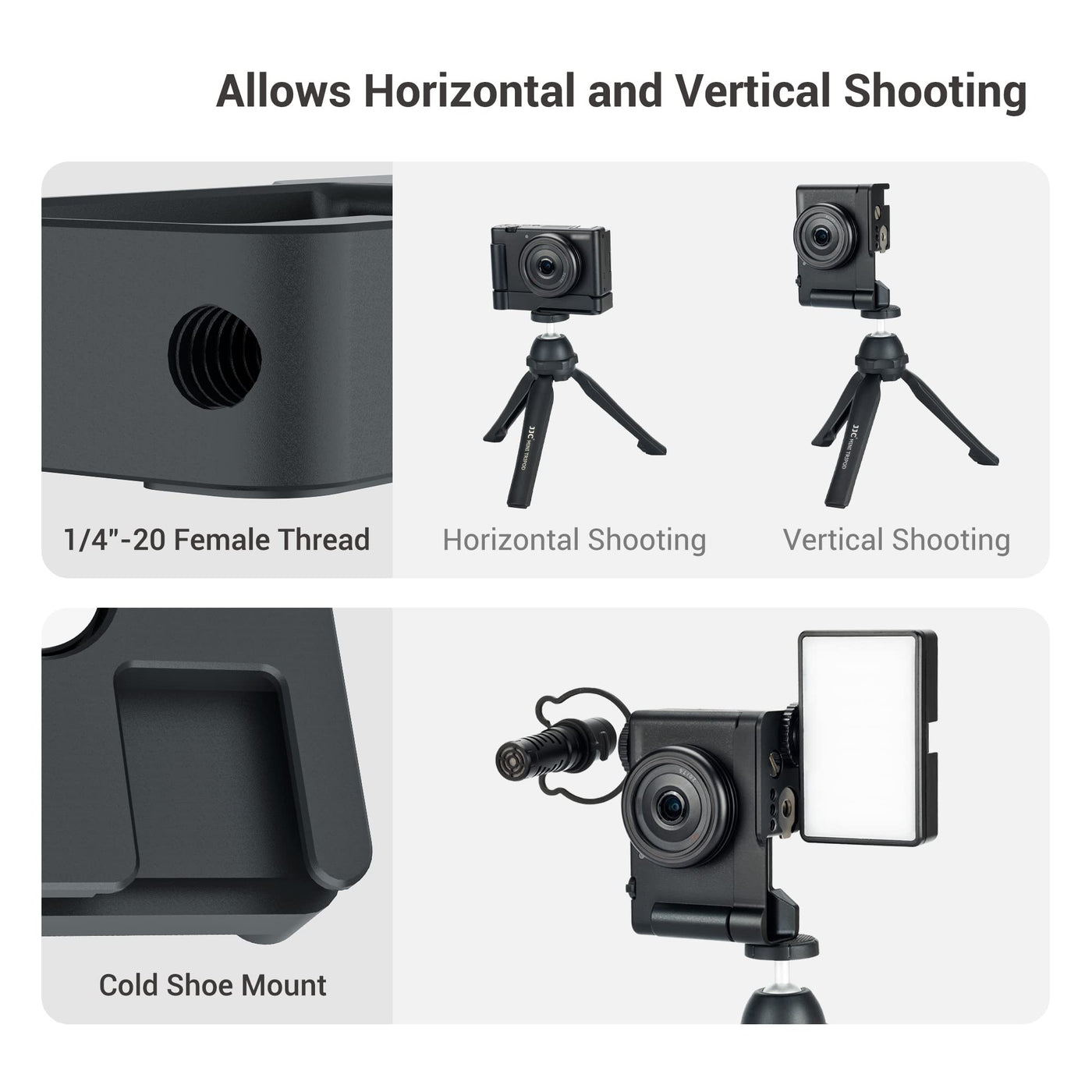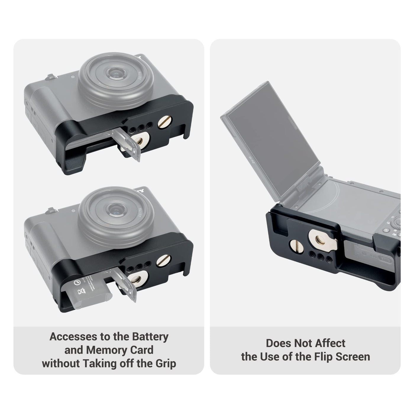 This Solid Metal Hand Grip Is Specifically Designed For Sony Zv-1F Mirrorless Camera. It Is Made Of Premium Aluminum Alloy, Which Is Sturdy And Durable. After Attaching The Hand Grip To Your Camera, You Will Enjoy A Comfortable, Stable And Secure Hold For Long Time Usage. The Accurate Accesses On The Bottom Allow You To Get To The Battery And Memory Card Without Taking The Grip Off. It Will Also Not Affect The Use Of Your Camera Flip Screen. The Bottom Of The Grip Adopts Arca Swiss Type Quick Release Plate Design And You Can Mount This Grip To Arca Swiss System Tripods Directly. Or You Can Mount It To Other Tripods Or Devices Via The 1/4-20 Tripod Socket. Three 1/4-20 Female Threads At The Bottom And One On The Side Of The Grip Allow You To Make Horizontal As Well As Vertical Shooting. You Can Easily Attach And Detach This Grip From Camera By Rotating The Screw With The Included Installation Tool. The Cold Shoe Mount On The Grip Allows You To Mount A Microphone, Led Light Or Other Photographic Gear When Used As Vertical Shooting.This Will Be A Very Useful Tool For Anyone With Medium, Large And Up Size Hands Or Those Who Were Used To Using Large Dslr And Longer Heavier Lenses.Package Includes:Camera Hand Grip X 1Installation Tool X 1Instruction Manual X 1Compatible Cameras: Sony Zv-1F Mirrorless Camera.