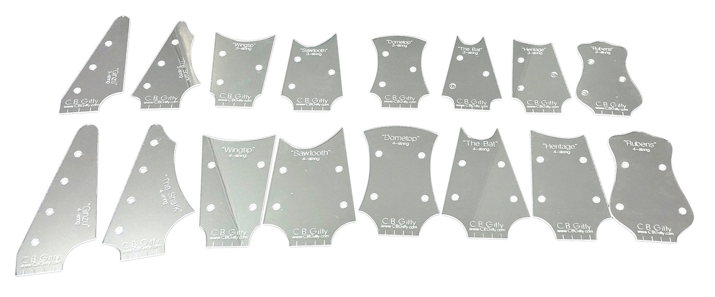 16Pc. Cigar Box Guitar Headstock Shape Templates 2 Sizes Each Of 8 Different Custom Designs