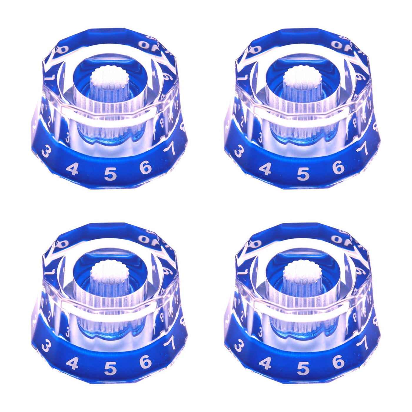 4Pcs Dodecagon Design Transparent Electric Guitar Knobs Clear Blue Speed Volume Tone Control Knob For Prs/Lp/Sg/Les Paul Guitar