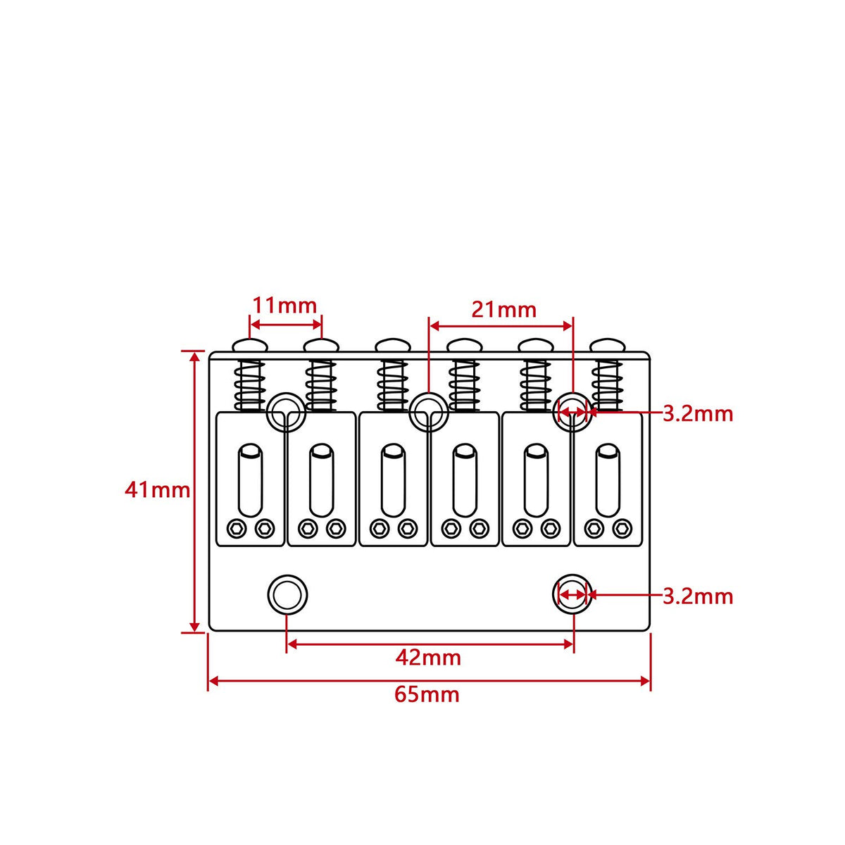 Specification:100% Brand New,Never Used Upgrade Your Current Bridge With This Professional Quality Replacement Part Before You Buy,Please Check The Dimension Of Your Guitar Against The Diagram Below To Make Sure Our Bridge Is A Perfect Fit. Top-Loading Design For An Easy Install & Easy Access Plate Size::65Mm X 42Mm/2.56''X1.65'' String Spacing: 11Mm/0.43'' Color: Black Included: Screws + Allen Key Package Included: 1 X Guitar Bridge 5 X Screws 1 X Wrench