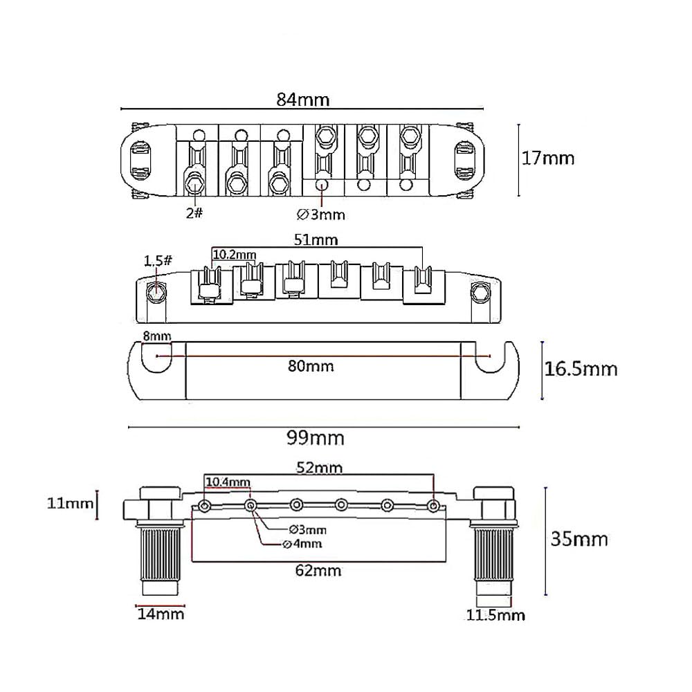 The Fittings And Threads Are All Metric Size The Post Spacing Is Standard It Fit A Gibson Sg Perfectly Roller Saddle Bridge And Tailpiece Fits Gibsonepiphone Les Paul Ect Electric Guitars Tailpiece Size: Width (17Mm) Length (98Mm) Tailpiece Spacing Between 2 Studs (82 Mm From Center To Center) Bridge Size : Width (17Mm) Length (845Mm) String Spacing: 103Mm Fully Adjustable Saddles For Harmonics With Smooth Working Rollers Complete With Locking Posts Package Includes: 1 Roller Saddle Bridge & 2 Studs 1 Tailpiece & 2 Matching Studs