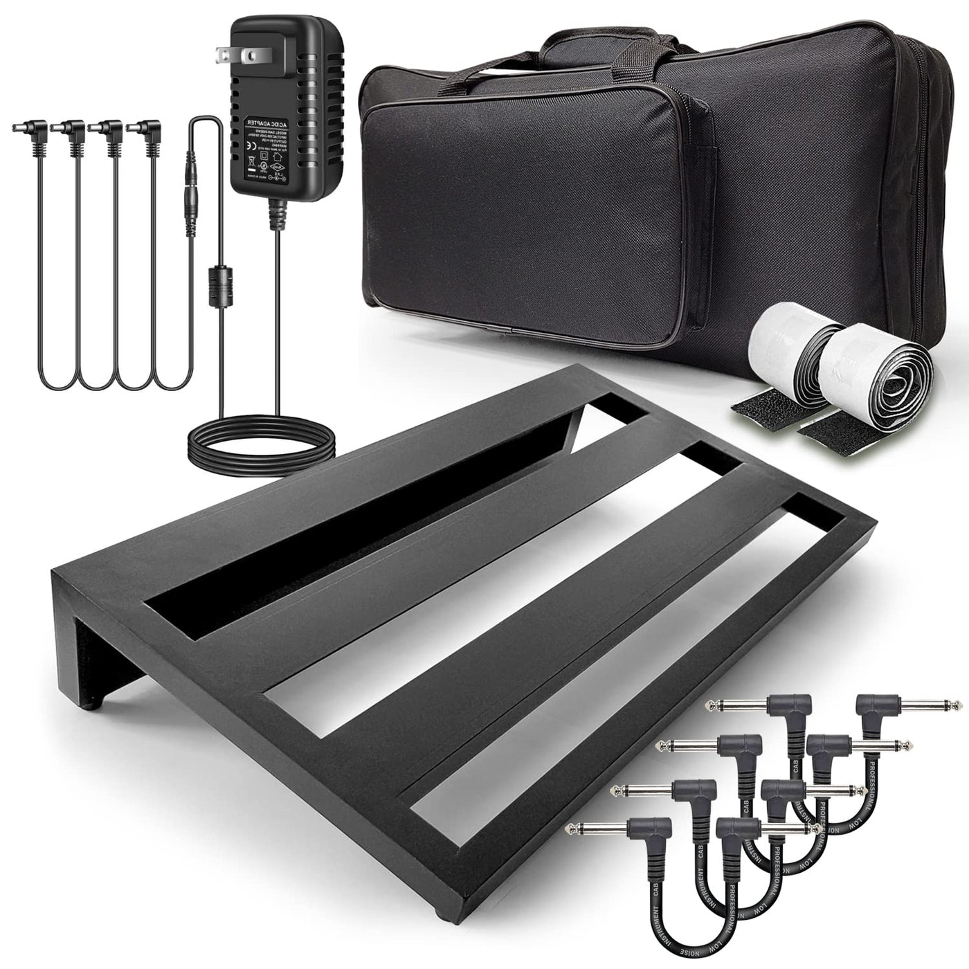 Here'S One Way To Organize The Accessories In The Guitar Pedalboard Bundle Pack: Axcessables 20X12 Pedalboard - The Main Item In The Bundle Is The Pedalboard Itself, Which Is The Platform For All Of Your Pedals. Make Sure To Place This At The Center Of Your Setup, Where It Is Easily Accessible. Power Supply - Place The Power Supply Unit At The Bottom Of The Pedalboard, Near The Power Outlet. This Will Allow You To Easily Connect Your Pedals And Power Them Up. Daisy Chain - The Daisy Chain Should Be Connected To The Power Supply And Used To Power Multiple Pedals At Once. You Can Either Attach It To The Bottom Of The Pedalboard Or Loop It Over The Top Of The Pedalboard. Battery Clips - If You Have Any Pedals That Run On Batteries, The Battery Clips Can Be Attached To The Daisy Chain Or Used To Power Them Individually. You Can Place These Towards The Side Of The Pedalboard Where They Won'T Get In The Way. Patch Cables - Use The Patch Cables To Connect Your Pedals Together In The Desired Order. These Can Be Placed On The Pedalboard Wherever They Are Needed, But It'S Best To Keep Them Tidy And Organized To Avoid Tangling. Overall, The Key Is To Keep The Setup Neat And Organized, With Cables And Accessories Neatly Arranged To Make It Easy To Access And Use Your Pedals.