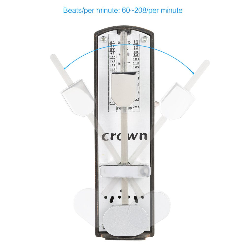 Features: Unique Mini Mechanical Metronome Design, Only 11Cm Height, Pocket Size, Very Portable. The Metronome Adopts Durable High-Elastic Nylon Movement, Which Ensures A More Stable Working State, Avoiding The Shortcomings That Ordinary Metronomes Are Not Accurate When Once Dropped. Its Sound Is Soft, Not Harsh At All. Without Bell Ringing. It Has A Wind Up Mechanism And A Swinging Pendulum And Is Enclosed In A High-Impact Plastic Case. Metronome Can Help You Train Your Concept On Music Speed, Make Your Instrumental Performance More Complete And Smooth, And Make The Rhythm More Even. Operating Instruction: (1)To Start: Wind Up The Winding Key In The Direction Of The Arrow Mark And Push The Pendulum Leftward. (2)To Set Tempo: Move The Sliding Weight Up And Down And Set Its Upper End On The Dial. (3)After Using: Slide The Weight To The Middle Or Upper Part Of The Pendulum And Put On The Cover. Specifications: Model: Jx-V Color: White, Black, Red, Mahogany, Light Mahogany (Optional) Material: Plastic And Metal Suitability: For Piano, Guitar, Violin, Ukulele, Chinese Zither And Other Music Instruments Beats/Per Minute: 60~208/Per Minute Item Size: 5 * 3.1 * 11Cm / 2 * 1.2 * 4.3In Item Weight: 154G / 5.4Oz Package Size: 6 * 4 * 11.8Cm / 2.4 * 1.6 * 4.6In Package Weight: 175G / 6.2Oz Package List: 1 * Mini Mechanical Metronome