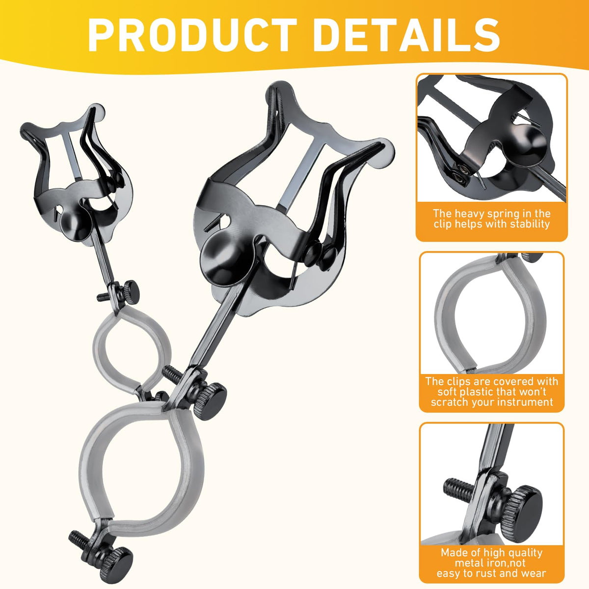 Clarinet Lyre,2 Pack Black Clarinet Lyre Holder For Marching Band,6.02Inch Clarinet Oboe Sheet Music Clip And Flip Folder,Genera