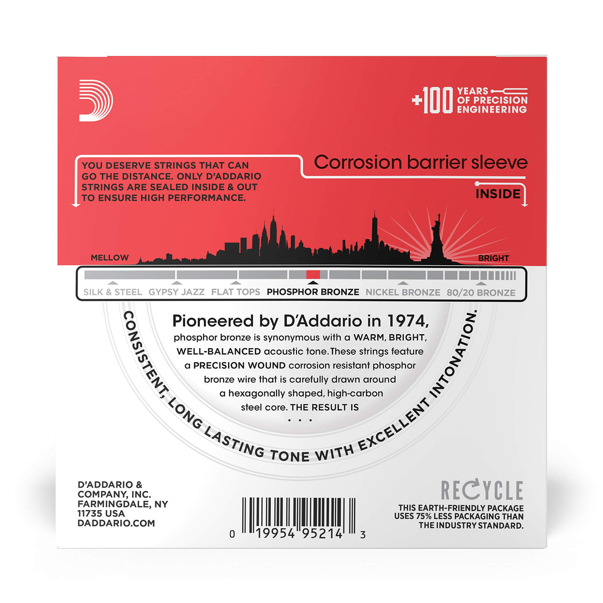 Daddario Was The First To Use Phosphor Bronze In Acoustic Guitar Strings Back In 1974 Today, Phosphor Bronze Is Played Throughout The World And Considered To Be The Standard In Acoustic Strings, Thanks To Its Beautiful Sonic Balance And Tonal Warmth Our Pioneering Phosphor Bronze Acoustic Guitar Strings Are Precision Wound With Phosphor Bronze Wrap Wire Over A High-Carbon Steel Core, Providing Tonal Versatility Suitable For All Acoustic Styles And Musical Genres 13-56 Medium Gauge Strings Provides Maximum Volume And Projection, With More Tension And Resistance