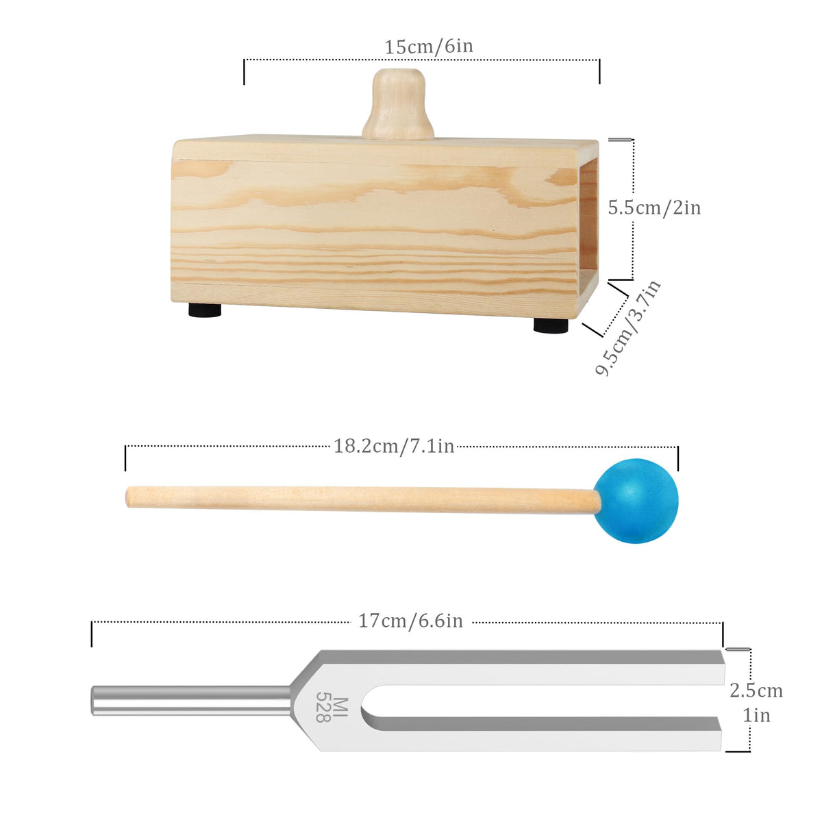 Didibirdi 528 Hz Tuning Fork With Exquisite Wooden Resonance Box,Aluminum Alloy Material With Silicone Hammer, For Reduce Stress