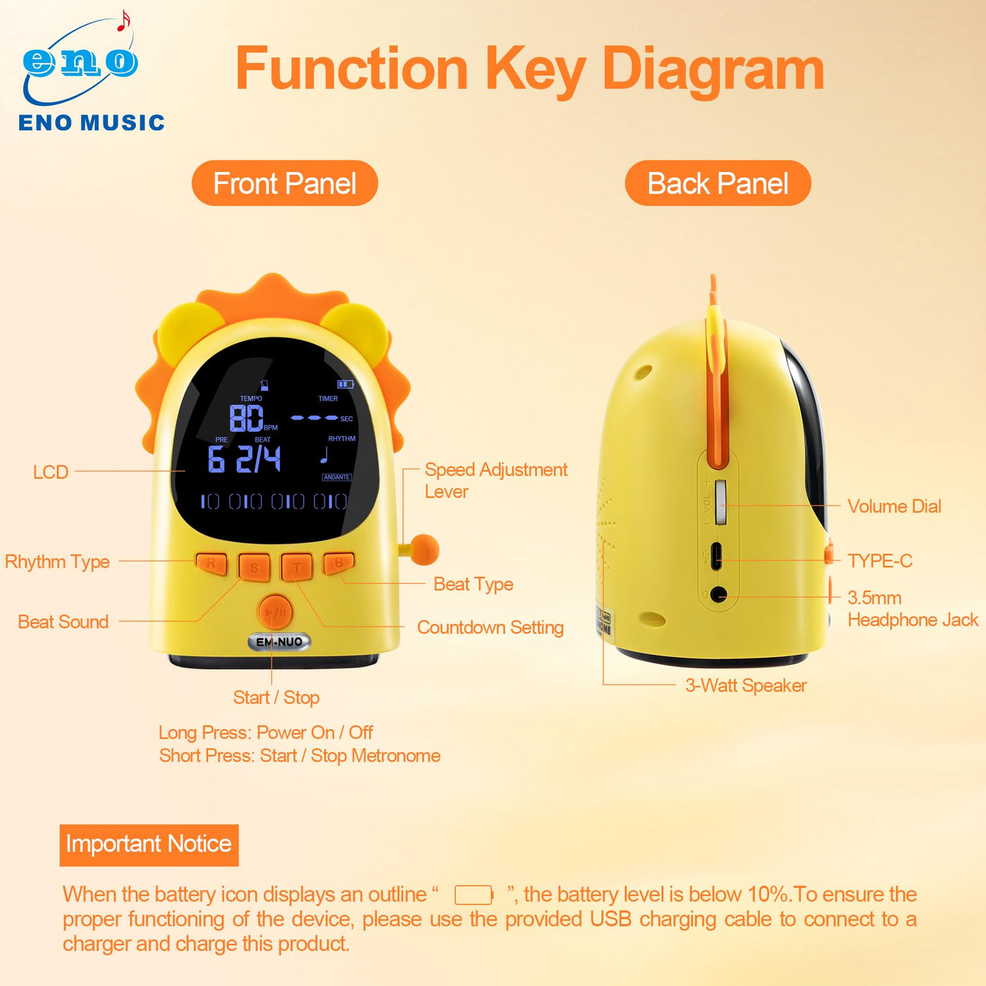 Eno Music Easy Control Cute Cartoon Electric Metronome For Acoustic Guitar Violin Ukulele Players With Big Sound