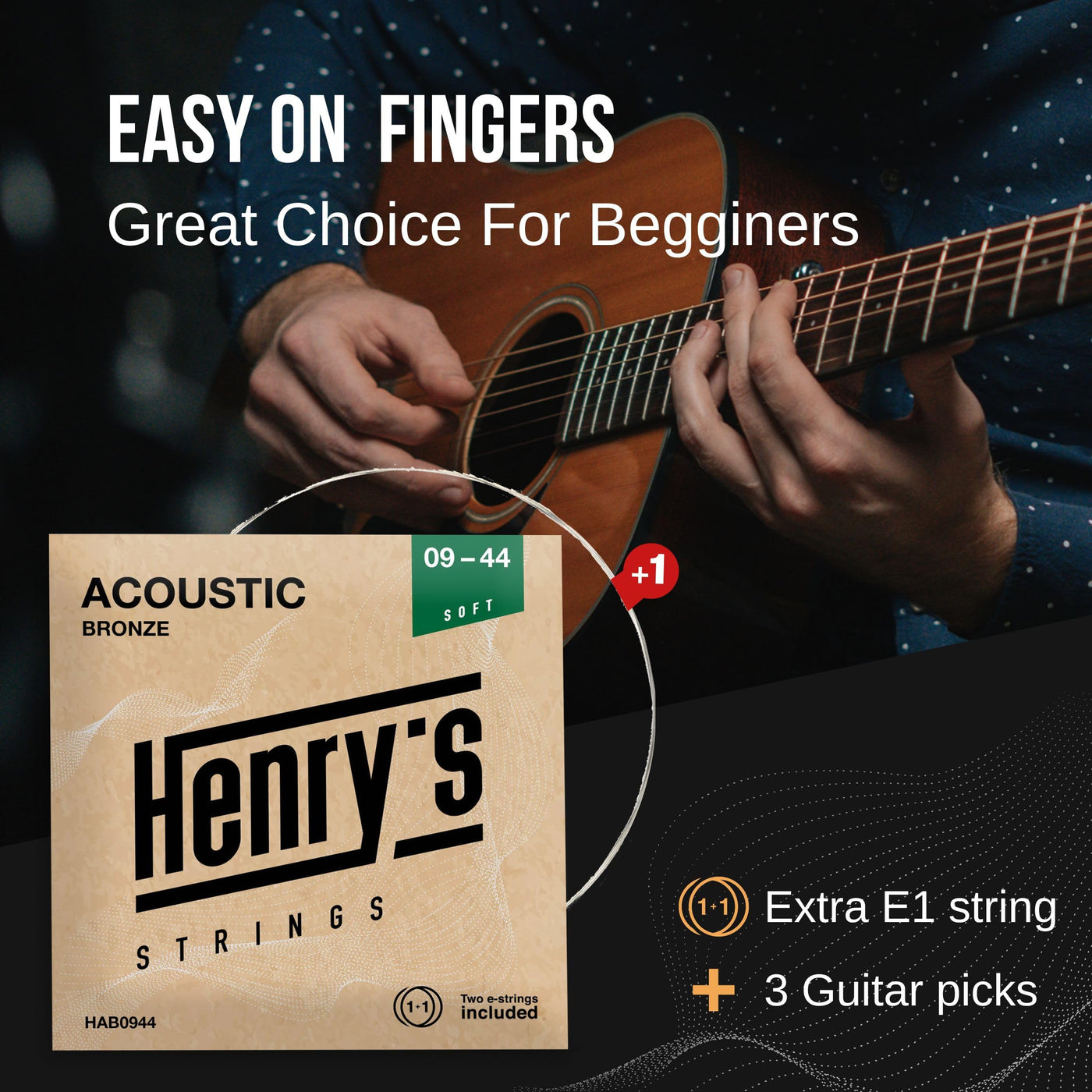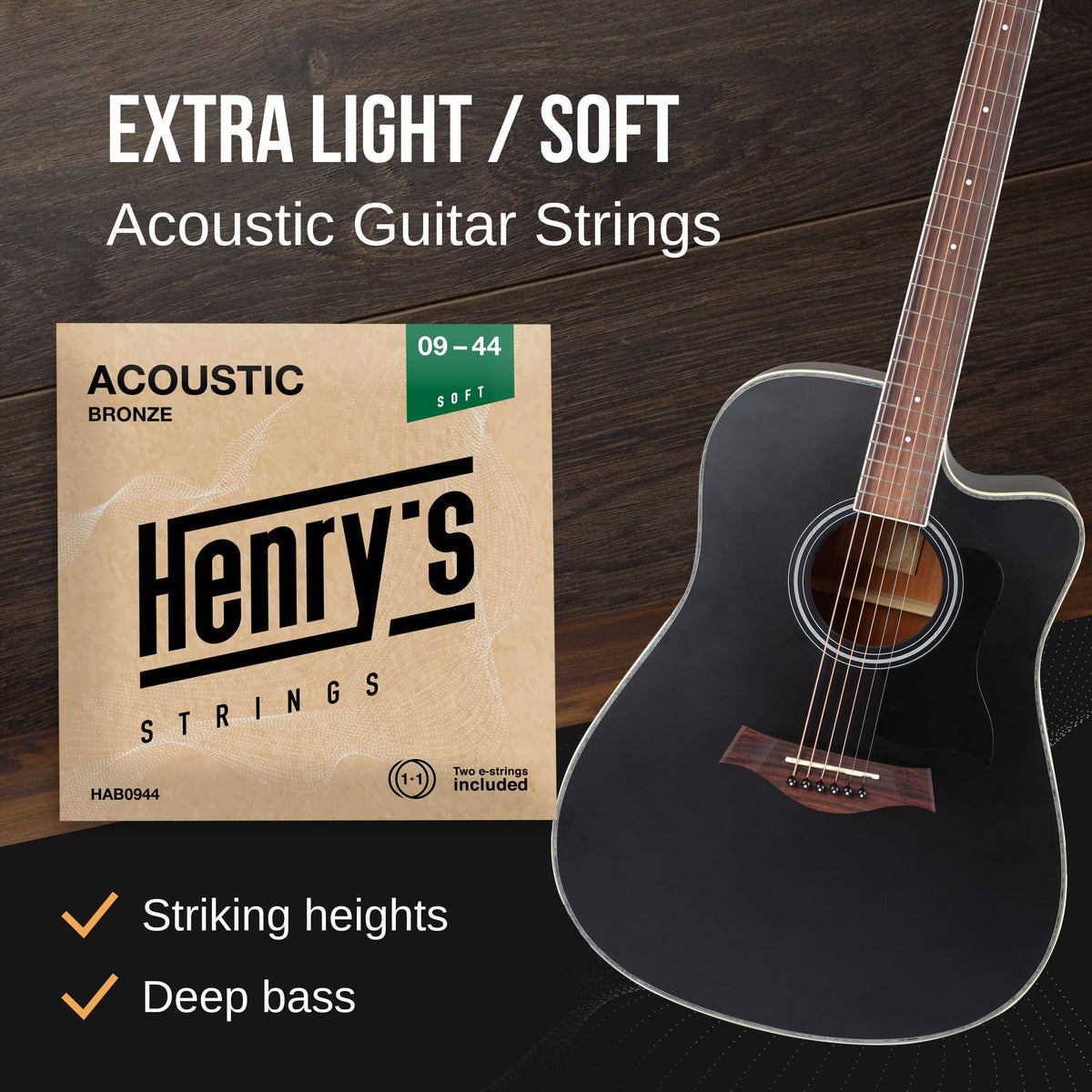Introducing The Hab0944-3T Acoustic Guitar Strings From Henrys Strings, Part Of Our Renowned Bronze String Portfolio For Acoustic Guitars. These Extra Light Acoustic Guitar Strings Are Expertly Crafted From High-Quality Steel Containing Carbon And Coated In Noble Bronze. This Premium Combination Of Materials Ensures A Bright, Tinkling Sound That Is Both Loud And Clear, Making These Strings One Of The Most Popular And Versatile Sets Worldwide. Designed For Both Beginners And Seasoned Players, The Hab0944-3T Set Is The Thinnest In Our Portfolio, With A Hardness Of 09-44 And Cylindrical Winding. This Makes Them An Excellent Choice For Guitarists Who Use Their Acoustic Guitar As A Solo Instrument, Providing Exceptional Playability And A Responsive Touch That Enhances Every Performance. The Super Light Acoustic Guitar Strings Offer A Delicate Yet Powerful Sound, Allowing For Expressive Playing With Ease. Henrys Strings Has Built Its Bronze Acoustic Set On The Foundations Of Volume, Sonic Flexibility, And Durability. These Characteristics Ensure That Our Strings Deliver A Rich, Resonant Tone That Stands Out In Any Musical Setting. Whether You'Re Strumming Chords Or Picking Intricate Melodies, The Hab0942-3T Strings Provide The Perfect Balance Of Sound Quality And Reliability. These Extra Light Acoustic Guitar Strings Cater To A Wide Range Of Playing Styles And Preferences. The Noble Bronze Coating Not Only Enhances The Aesthetic Appeal But Also Contributes To The Longevity Of The Strings, Making Them A Cost-Effective Choice For Musicians Seeking Quality And Endurance. Experience The Superior Sound And Performance Of The Hab0944-3T Strings By Henrys Strings. These Super Light Acoustic Guitar Strings Are Designed To Meet The Demands Of Guitarists Around The World, Offering A Perfect Blend Of Volume, Clarity, And Durability. Elevate Your Playing With Strings That Are As Versatile As They Are Reliable, And Enjoy The Outstanding Tonal Qualities That Have Made Henrys Strings A Trusted Name In The World Of Acoustic Guitar Strings.