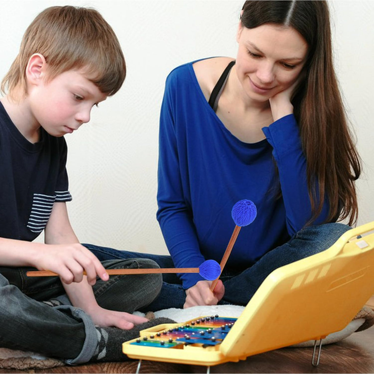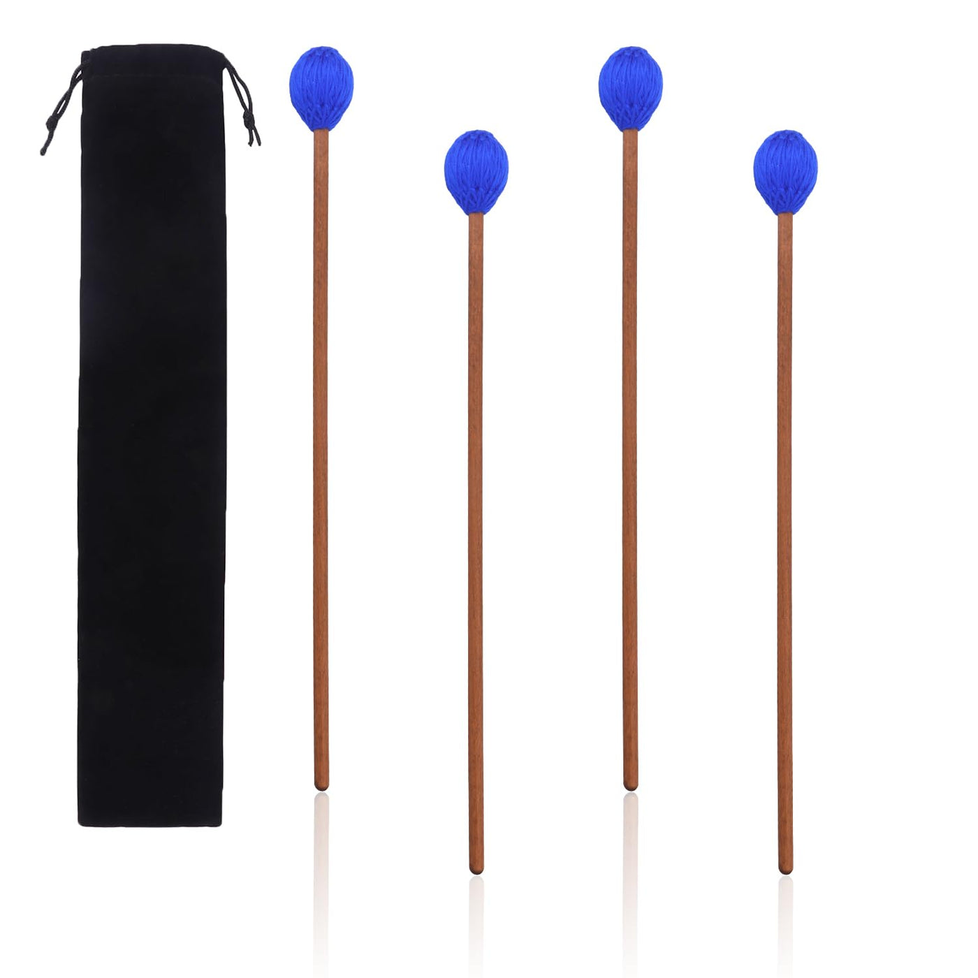 Geytetqi 2 Pair Blue Marimba Mallets Professional Marimba Mallets Set With Yarn Mallets And Birch Handle, Medium Hard Mallets,