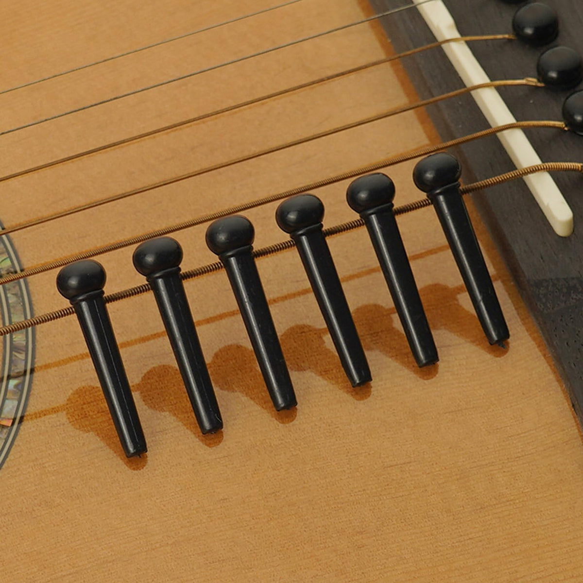 'Feature: 1. Finely Polished: Each Guitar Bridge Pins Is Finely Polished, With Smooth Edges And No Sharp Corners, Avoiding Scratches To The Guitar Top Or Fingers During Use, Protecting Your Guitar And Your Hands 2. Enhance The Sensitivity Of Guitar Tone: Optimize The Design Of The Acoustic Guitar String Pegs To Improve The Response Speed To String Vibration, Making The Guitar Tone More Sensitive And Delicate 3. Enhance The Details Of Guitar Tone: Optimize The Contact Surface Between The Guitar Pegs And The Strings, Reduce The Noise Interference, Enhance The Details Of The Tone Expression, So That Every Play Is Full Of Delicate Emotions And Layers Package Includes: 1 X Guitar Bridge Pins Puller 6 X Acoustic Guitar Pins Color: Black Material: Abs''