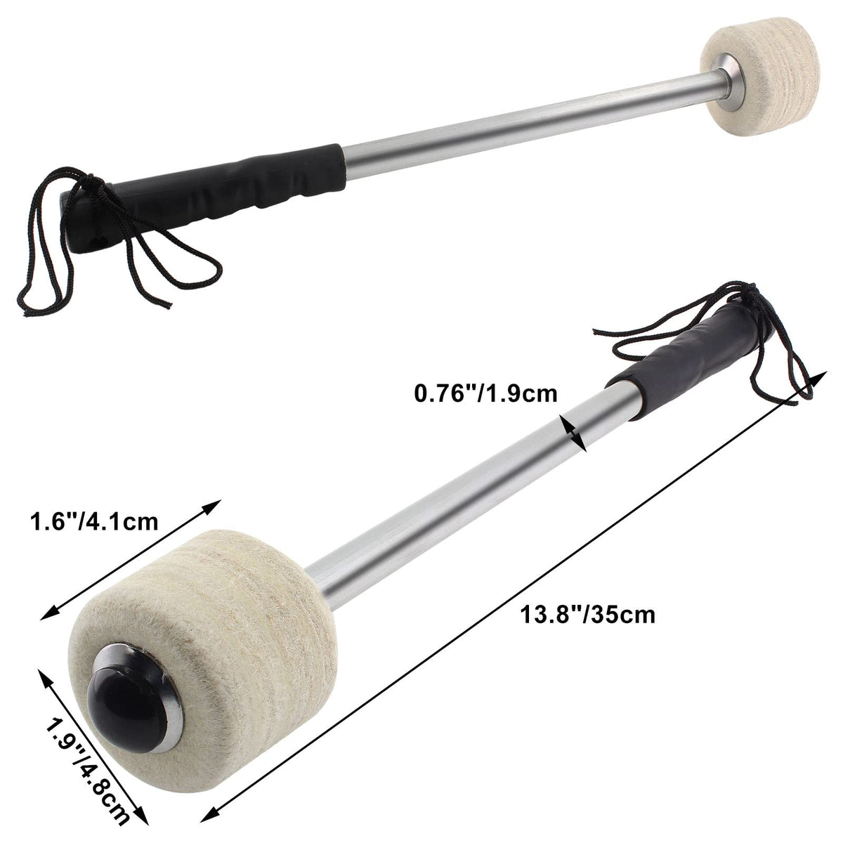 Jiozermi 2 Pcs Drum Mallet 13.8 Inches Length, Wool Felt Drum Stick, Anti Slip Bass Percussion Sticks, Instrument Band Accessory