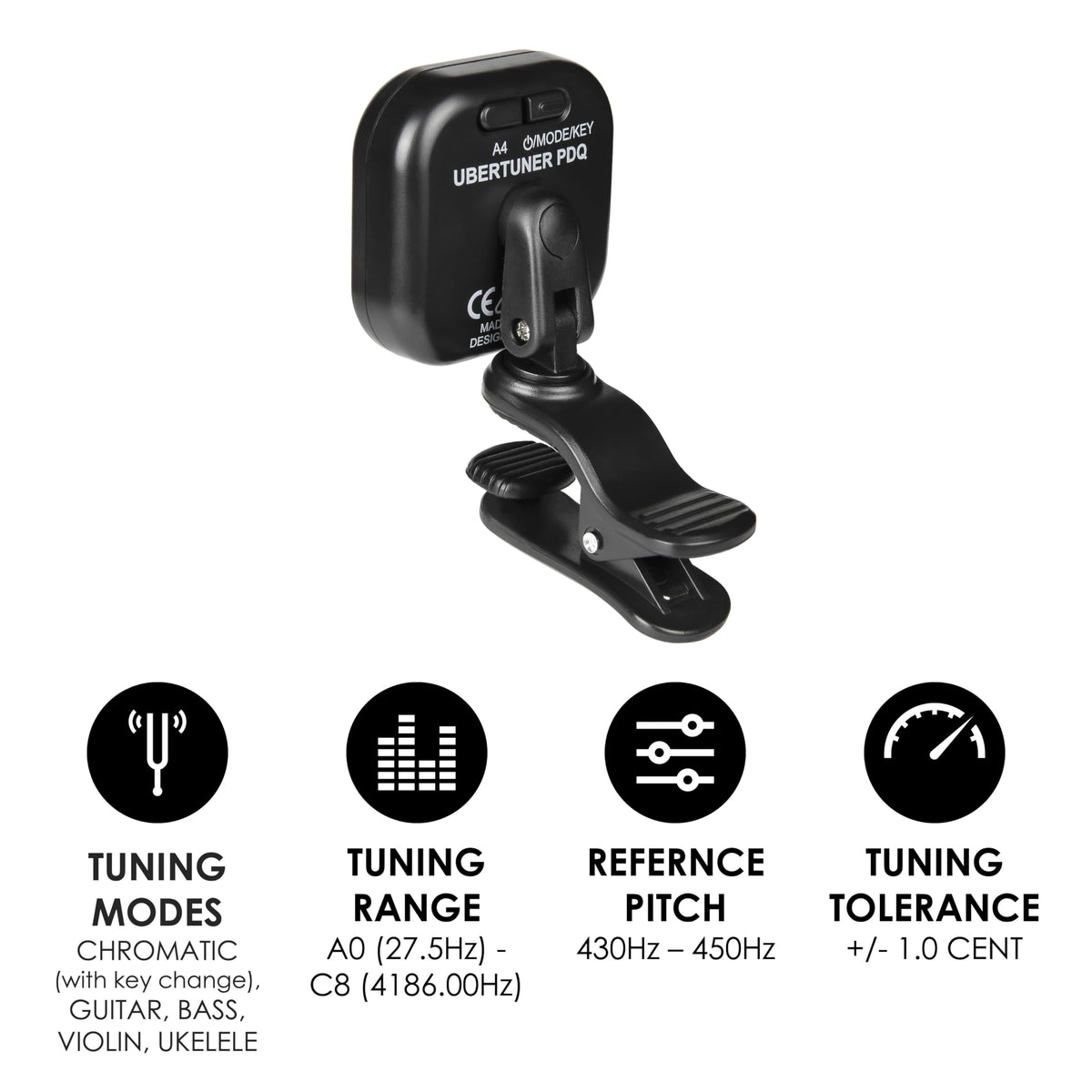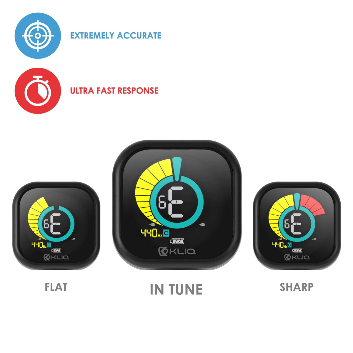 Kliq Ubertuner Pdq Rechargeable Professional Clip On Tuner For All Instruments With Guitar, Ukulele, Violin, Bass & Chromati