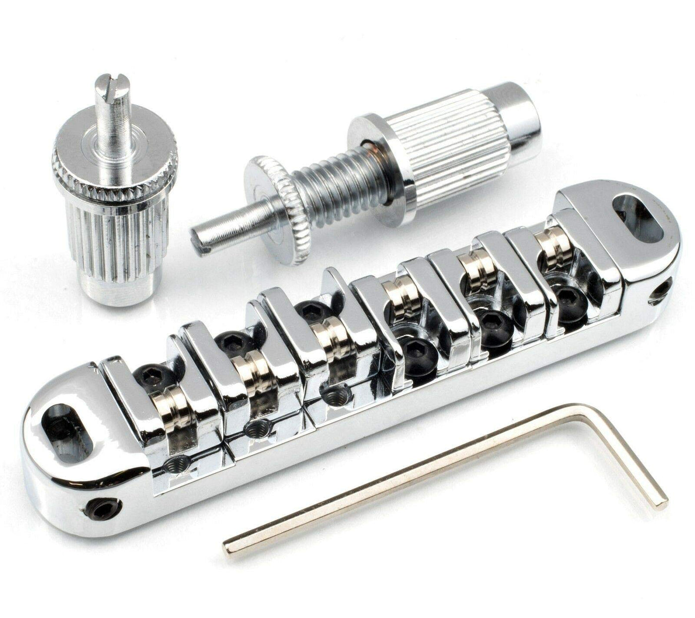 Locking Roller Bridge For Les Paul Style Guitar - Chrome Beautifully Machined Low Profile Bridge With Rounded Edges For Maximum Comfort, And Roller Saddles For Fewer Broken Strings