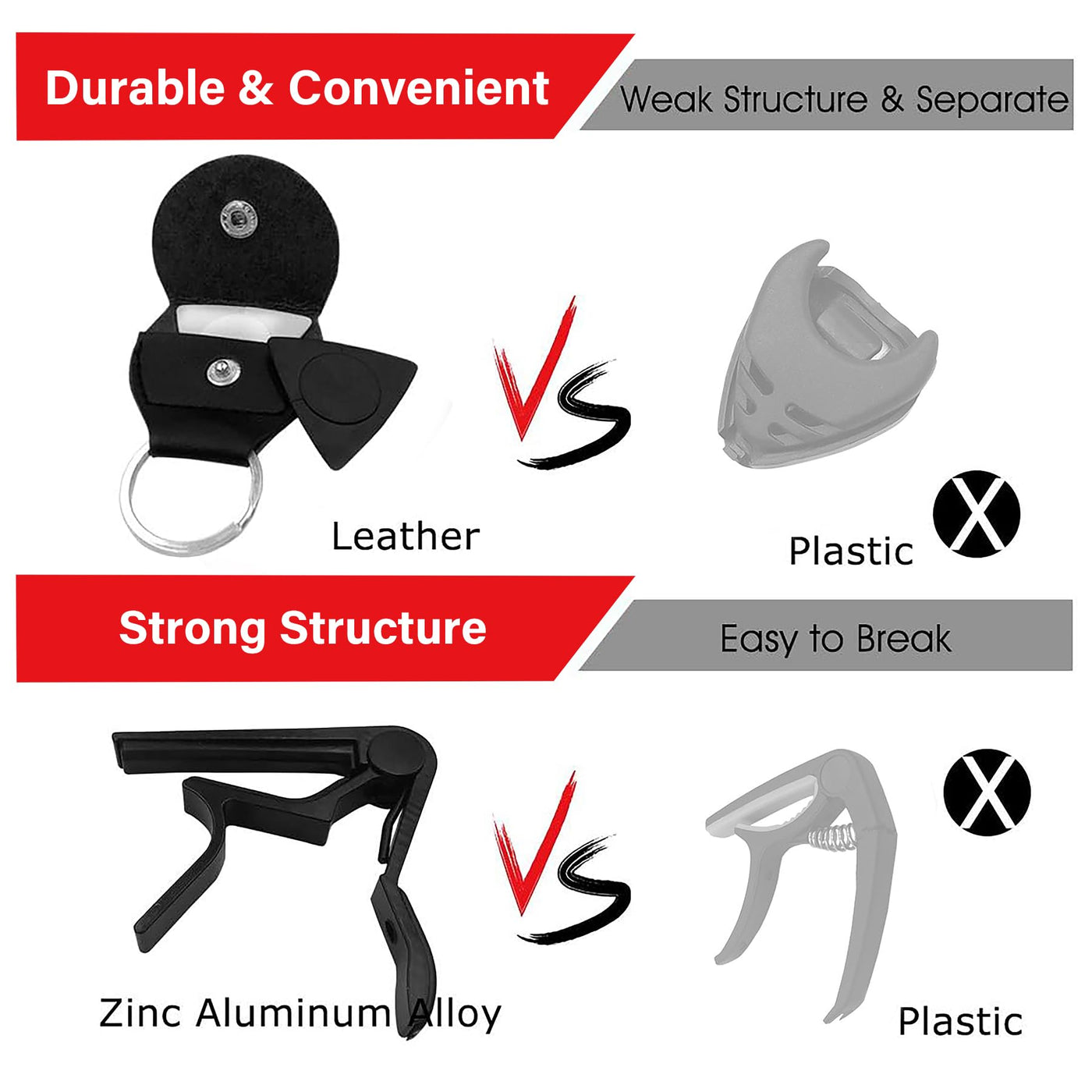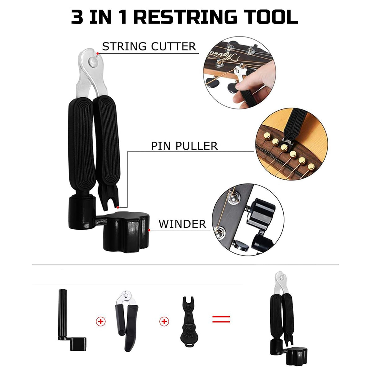 Lomeve Guitar Accessories Kit Include Acoustic Guitar Strings, Tuner, Capo, 3 In 1 Restring Tool, Pick Holder, Bridge Pins, Nuts