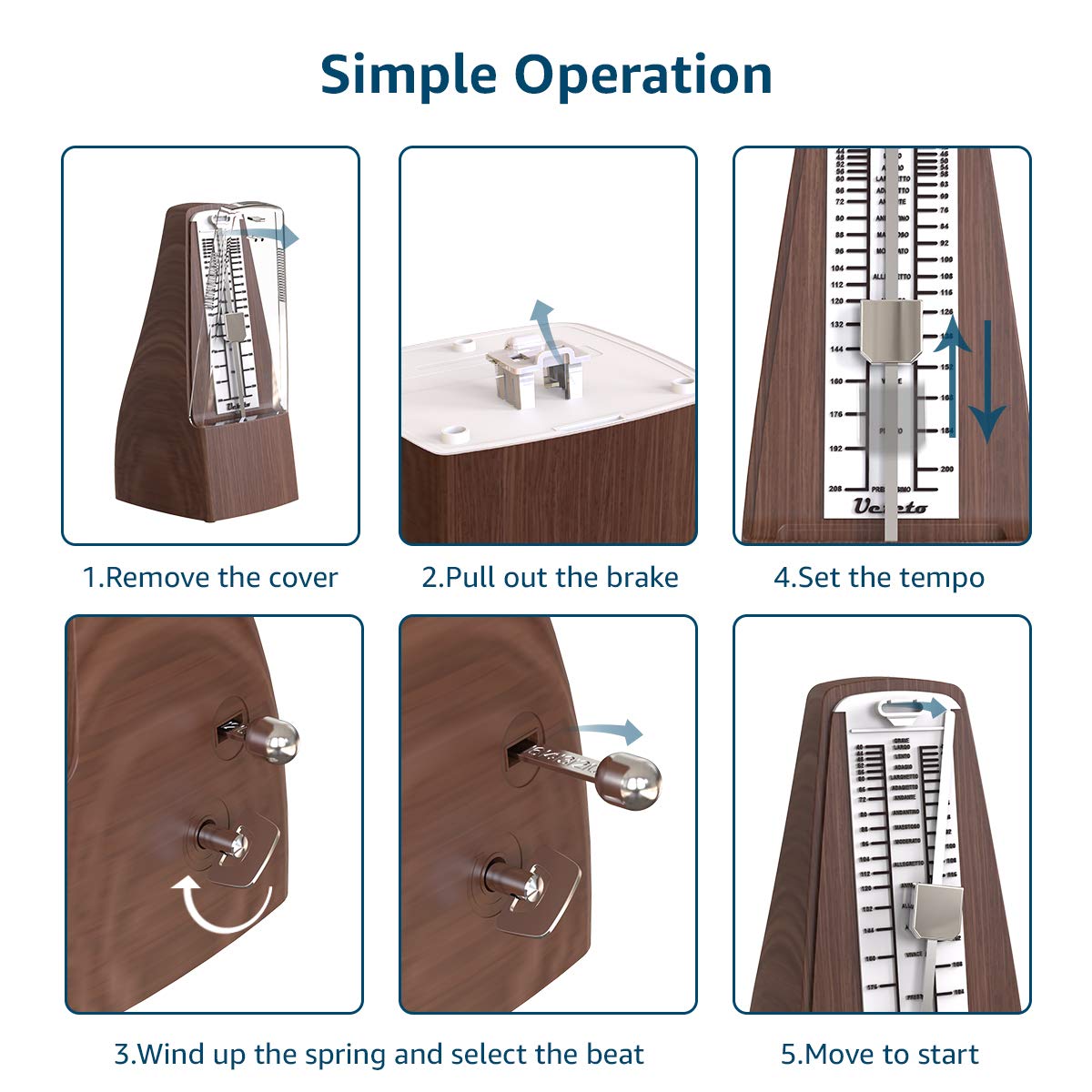 Keep Track Of Both Your Tempo And Rhythm With The Cantus Metronome! Features Play Your Favorite Pieces With Ease!-Help You Develop Rhythm, Maintain Tempo, Play Accurately And Increase Your Musical Awareness. Applicable For Most Music Instruments-Produce Rhythms At A Proper Pace When Practicing Piano, Violin, Guitar, Bass, Drum And Other Musical Instruments. Incredible Features-Audible Click &Amp; Bell Ring To Maintain The Rhythm While Reading Music Sheet; Wind Up Mechanism Produce Metrical Beats, No Battery Required; Tempo Range: 40-208 Bpm; Beat Selection:0,2,3,4,6. Easy To Use Even For Children &Amp; Beginners-Take Out The Brake, Pull Off The Cover, Adjust The Beat And Tempo, And Then You Are Ready To Use; An Average Single Full Wind (2160 Clicks) Lasts At Least 18 Minutes Depending On The Tempo; We Stand Behind Our Products 100% With Awesome Customer Support! Email Us If You Have Any Questions. Specifications Material: Plastic &Amp; Metal Mechanism Tempo Range: 40~208 Bpm Beat: 0,2,3,4,6 Power: Winding Mechanism Dimension: 201*95*110Mm Weight: 650G Tolerance Less Than 1% Package *Mechanical Metronome *User Manual *After-Sale Service Card Note: Avoid Using The Metronome In A Dusty Or Damp Place; Avoid Any Drop Or Attack On The Metronome; Always Put On The Plastic Cover After Use; Only Use Soft Cloth To Clean The Metronome.