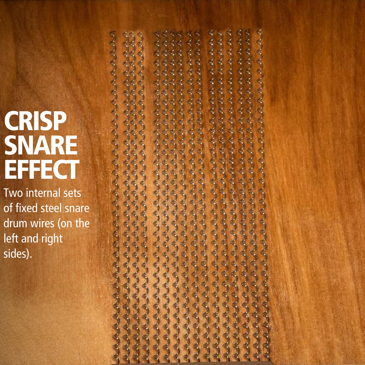 The Meinl Turbo Slaptop Cajon Is A Conceptual Step Up To A New Level. This Model Is Designed To Bring The Striking Surface Up Nearer To The Player, For A More Upright Playing Style. The Sound Projects Forward Into The Audience From The Sound Port Located On The Front Of The Instrument, Which Is Also Convenient For Microphone Placement. High And Low Tones, As Well As A Snare Effect Are Built Into The Sound Board, Both Of Which Project Forward. This Cajon Has All Of The Outstanding Acoustic Properties Of Any Standard Meinl Cajon With Two Sets Of Snares Located On Each Side Of The Instrument, Each Having Their Own Sound Port. The Turbo Slap Top Cajon Is Perfect For Ample Volume Levels. Striking The Sides And Corners Gives More Slap And Snap Sounds, While Playing In The Middle Of The Surface Delivers Deep And Boomy Bass Punches. Soft Finger Rolls Are Also Easily Achievable With Its Ultra-Sensitive Playing Surface. Cajon Are The Perfect Instrument To Use For Softer Acoustic Gigs When A Full Drum Set Cannot Be Used.