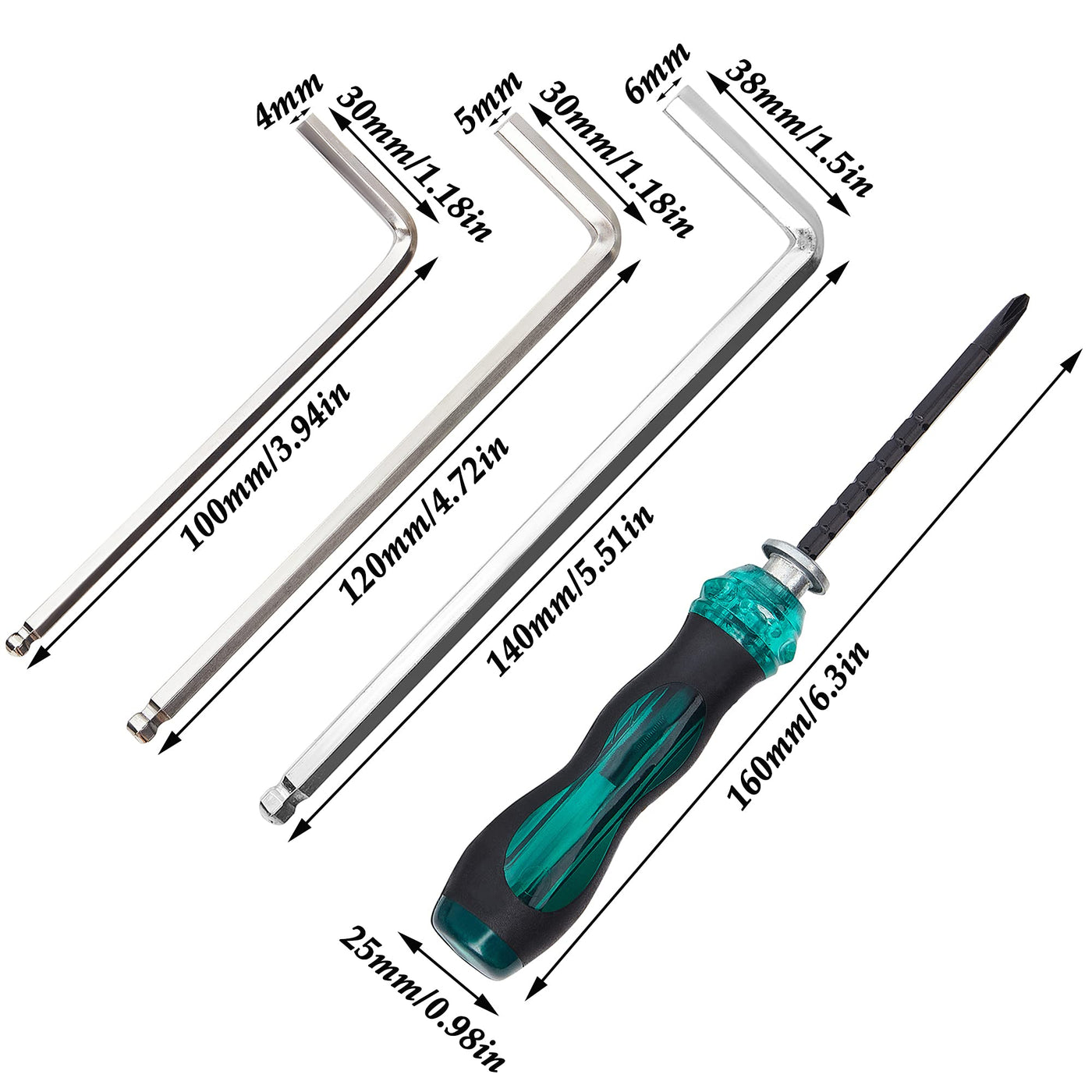 2Pcs Black Ball End Truss Rod Wrenches (4Mm & 5Mm): Made Of Carbon Steel & Durable Used To Adjust The Guitar Neck Straight, Suitable For Martin Acoustic Guitar Or Other Guitar Which Couldnt Reach It With A Regular Hex Wrench Truss Rod Adjustment &Nbsp 9Pcs Black Guitar Allen Wrench Set: Set Of 9 Including Different Size: 15Mm, 20Mm, 25Mm, 30Mm, 40Mm, 50Mm, 120In, 18In, 316In Various Guitar Allen Wrench Gauges Are Suitable For Most Guitar Bass Neck, Bridge, Nut Locking, Volume Knob, Bridge String Block Screw Adjustment 15Mm For Electric Guitar & Bass Bridge 20Mm For Volume Knobs 25Mm For Electric Guitar Bridge String Block 30Mm For Nut Locking 40Mm & 50Mm For Most Acoustic Guitar Truss Rod Screw Gauges 120 Inch For Some Guitar Bridge Which Made In Japan 18 Inch For Some Guitar Bridge Made In Usa 316 Inch For Some Guitar Bridge Made In Mexican &Nbsp 3Pcs Silver Lengthened Wrenches (4Mm & 5Mm & 6Mm): Set Of 3 Including Different Size: 40Mm, 50Mm, 60Mm Reach Deep Areas Easily By Using The Ball End And Apply Higher Force Effortlessly By Using The Short End Used To Drive Bolts And Screws With A Hexagonal Head Use For Locking Hexagonal Screws, Adjusting Guitar Neck Truss Rod Efficiently, Etc &Nbsp Two-Way Screwdriver: By Pressing The Round Iron Piece In The Middle Of The Screwdriver, You Could Adjust Screwdrivers Length And Exchange Its Head &Nbsp Package Includes: 2 X Black Ball End Truss Rod Wrench (4Mm & 5Mm) 9 X Black Allen Wrench (15Mm, 20Mm, 25Mm, 30Mm, 40Mm, 50Mm, 120In, 18In, 316In) 3 X Silver Lengthened Wrench (4Mm & 5Mm & 6Mm) 1 X Two-Way Screwdriver 1 X Portable Storage Bag
