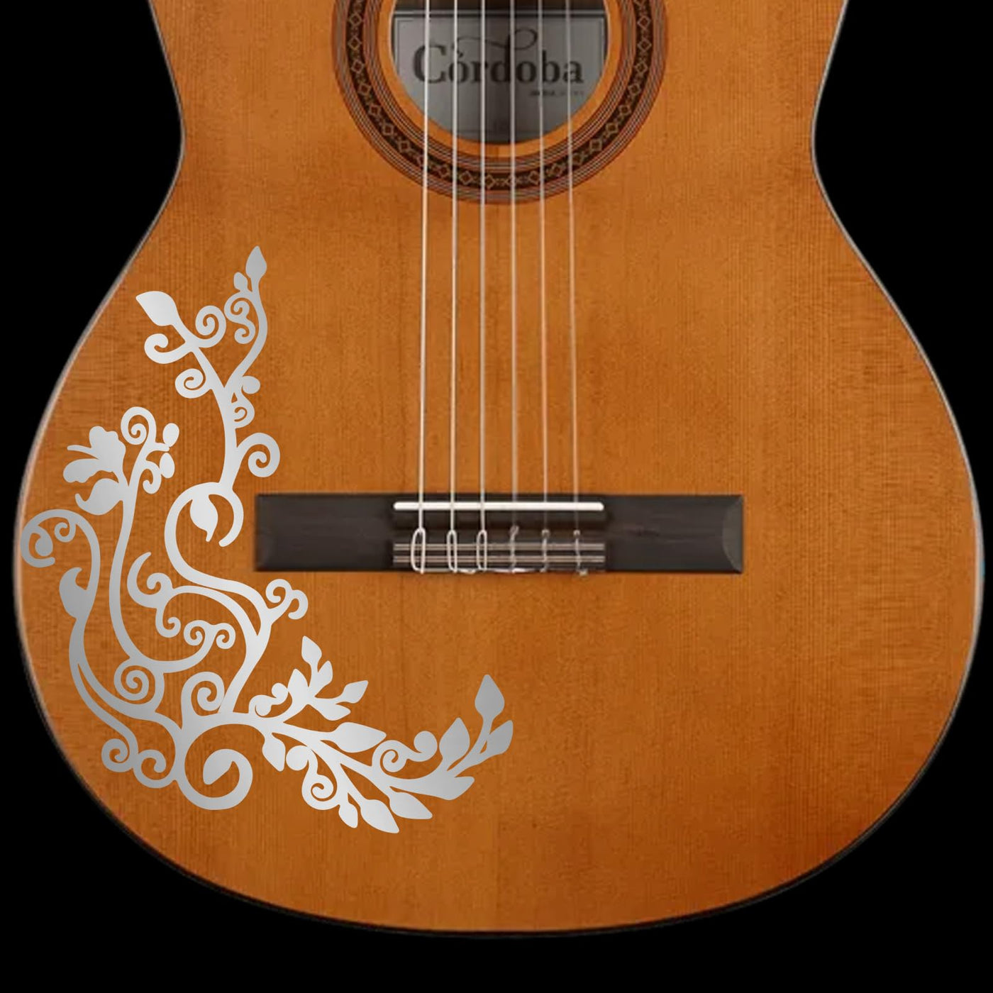 Pligreat 2 Pack Silver Flower Vine Guitar Guard Board Stickers Removable Guitar Decals Diy Gifts For For Bands Electric Bass Aco
