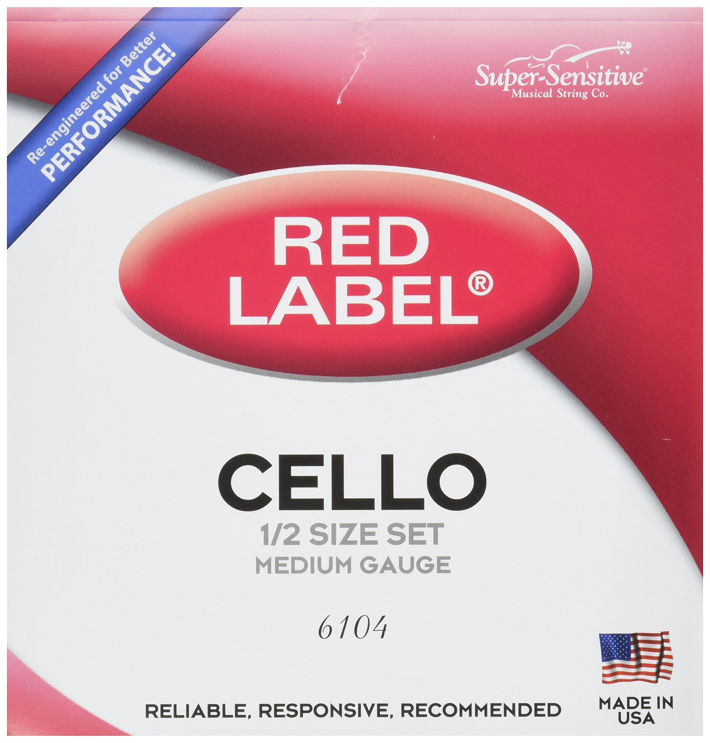 Super Sensitive 6104 Red Label Cello String Set, Medium, 1/2 Size