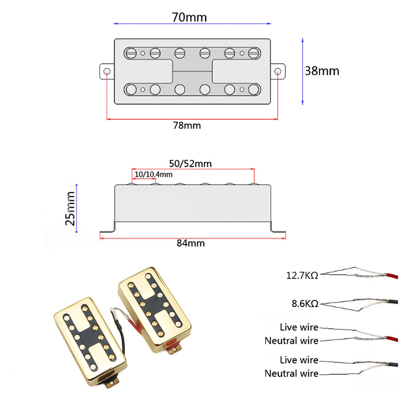 Magnet: Ceramic Color: Black Cover With Golden Frame Pickup Pole Spacing: Neck-50Mm, Bridge-52Mm. Complete With Neck And Bridge Surrounds. Will Fit Most Guitar As A Direct Replacement. Excellent Value Lp Alternative Humbuckers. Fully Wax Potted And Sealed To Eliminate Any Unwanted Feedback And Noise. Package Includes: 1 Pair Double Coil Humbuckers 4 X Mounting Screws 4 X Springs