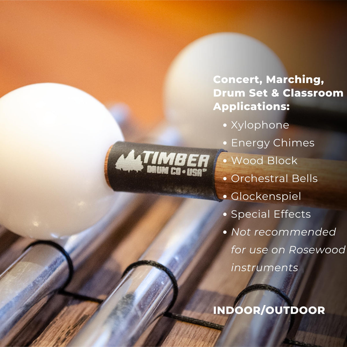 Timber Hard Poly Mallets W/Birch Handlesthe Timber Drum Company Is A Small Shop Dedicated To Crafting American-Made Instruments. The Hard Poly Mallets With Solid Birch Handles Have A Natural Feel In Hand With Nice Balance. They Can Be Used For Many Instruments Where A Percussive Attack And Bright Tone Are Needed. Some Examples Are: Wood Block, Energy Chime, Xylophone, Bells, Glockenspiel, Crotales. Sold In Pairs. Made In The U.S.A.- Made In The Usa- Solid Birch Handles Offer Durable & Comfortable Grip- Hard Poly For Clear Bright Tone-13Inchesoverall- 1-Inch Diameter Head