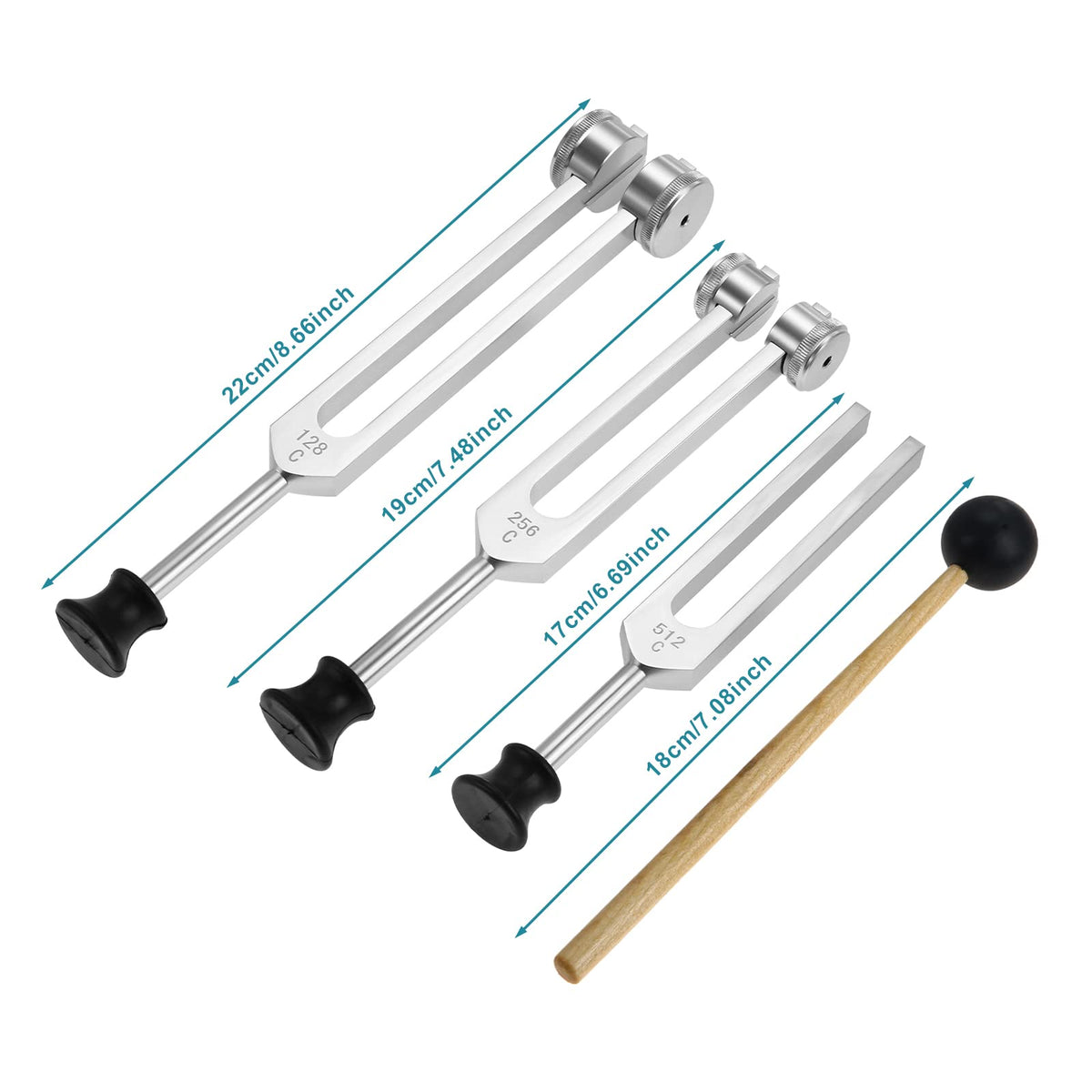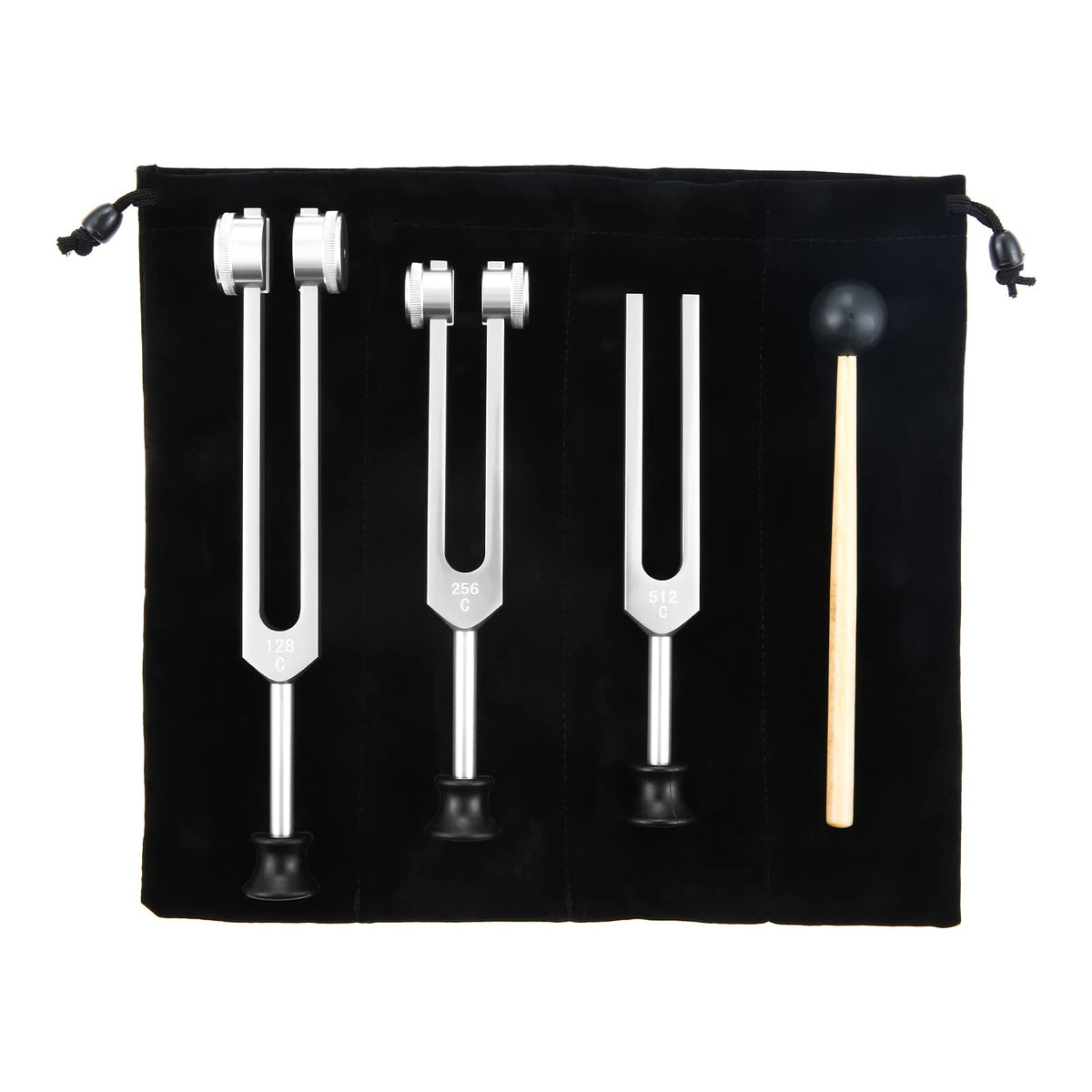 Tuning Fork Set(128Hz, 256Hz, 512Hz), Tuning Fork Kit For Chakra With Hammer, Storage Bag And Cleaning Cloth, Silver
