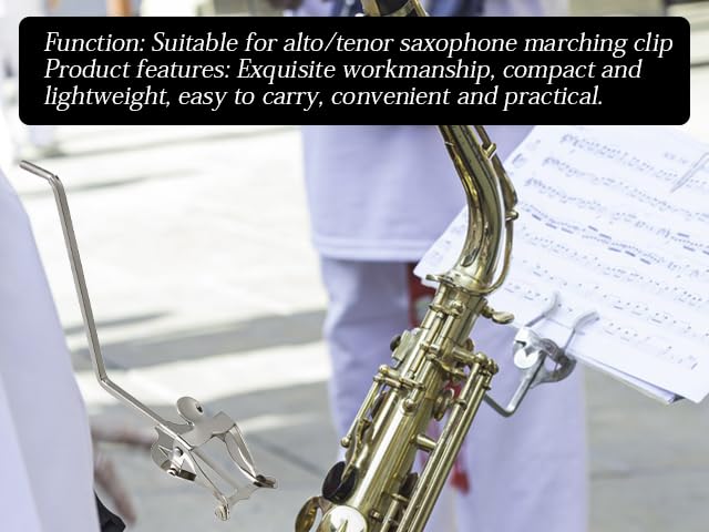 'Features: 1.Sturdy, , Not Easy To Break, A Great Accessory For The Marching Saxophonist, It Can Replace Old And Broken Accessories For Better Use. 2.A Great Accessory For Beginners And Marching Bands, It'S Quick And Easy To Use, Ideal As A Gift To Replace Your Friends Or On Your Desk In The Office And At Home. 3.Small And Lightweight, Easy To Carry, Convenient And Practical, The Heavy-Duty Spring In The Clip Facilitates Years Of Reliable Use And Is Highly Matched To The Device. 4.Elegant Silver Appearance, Exquisite Workmanship, Smooth Surface, Delicate And Delicate, Both Practical And Good-Looking, Make Your Beloved Instrument More Beautiful. 5.Mainly Made Of Metal Plating, The Product Material Is Good, It Is Firmly Installed In The Lyre Jack Of The Alto And Tenor Saxophone, The Design And Are Simple, Very Convenient And Practical. Specifications: Material:Metal Plating Color:Silver Size:0.4X10Cm/0.16X3.94In(D X L) Weight:48G Package Include: 1 X Marching Spectrum Clip 1 X Storage Bag 1 X Wiper''