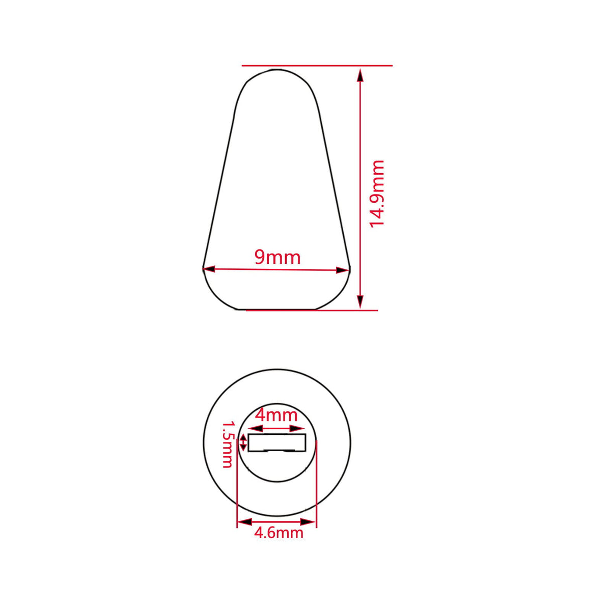 Specification: 100% New, Never Used Color:Gold Metal Coating Material:Plastic Height:14.86Mm(0.585In) Outer Diameter: 27Mm(1.063In) Inner Diameter: 4*1.5Mm(0.157*0.059In) Fits For Most Tl, St Guitar And Similar Electric Guitar Or Precision Bass Instruments Package Includes: 2 X Selector Switch Tip