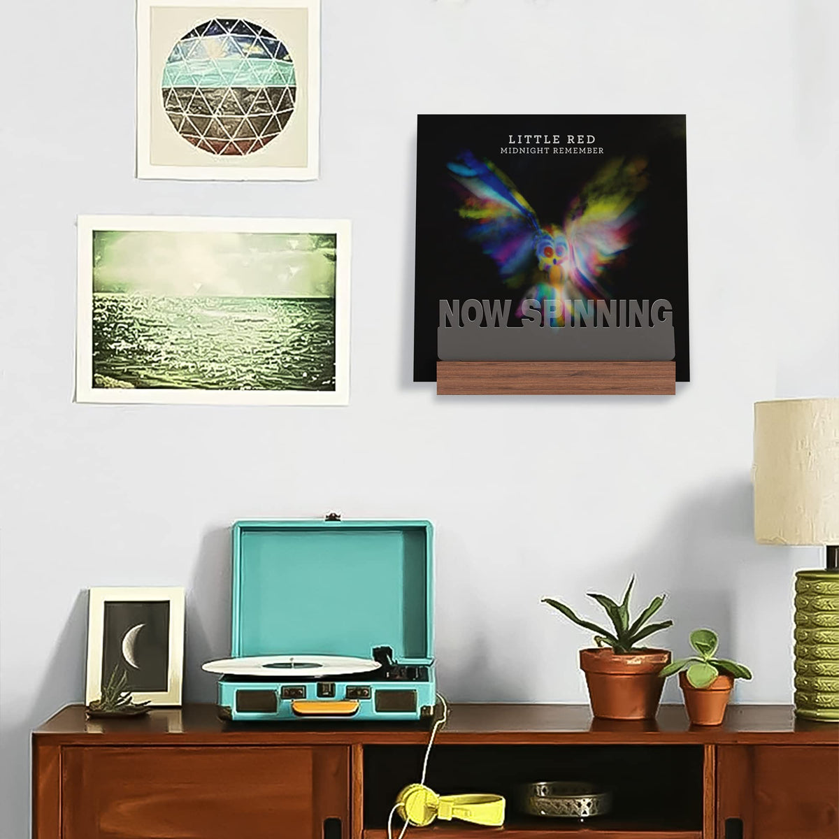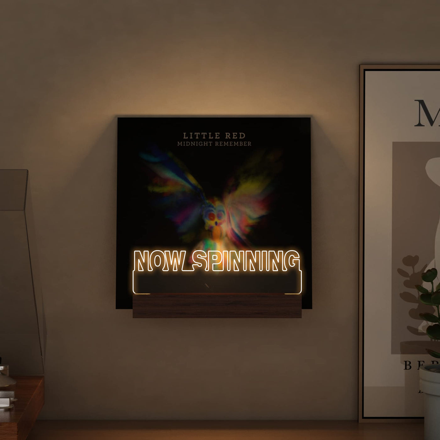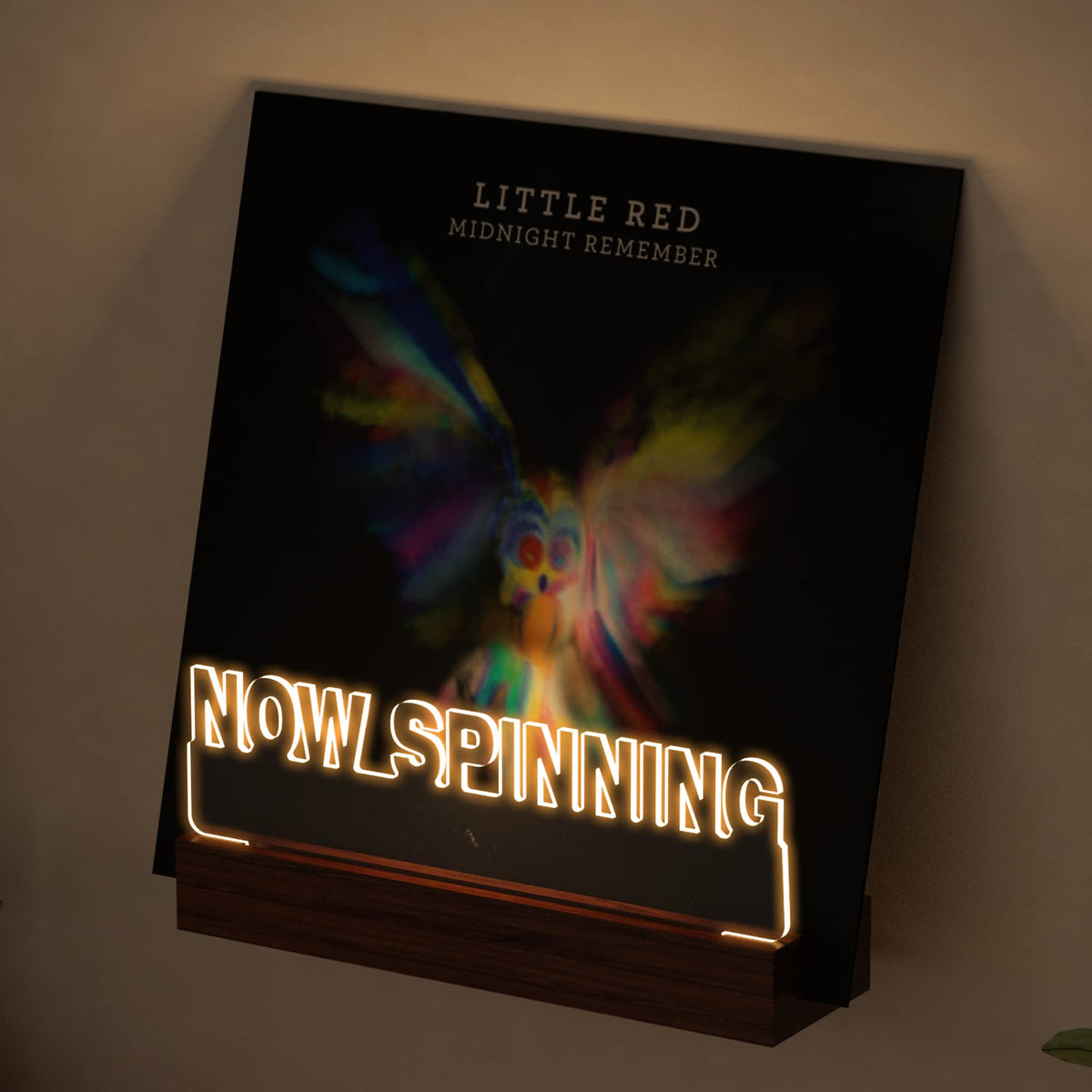 Ammonite Light Up Now Spinning Vinyl Record Stand Wall Mount, Now Playing Record Player Stand, Wooden Acrylic Holder For Vinyl A