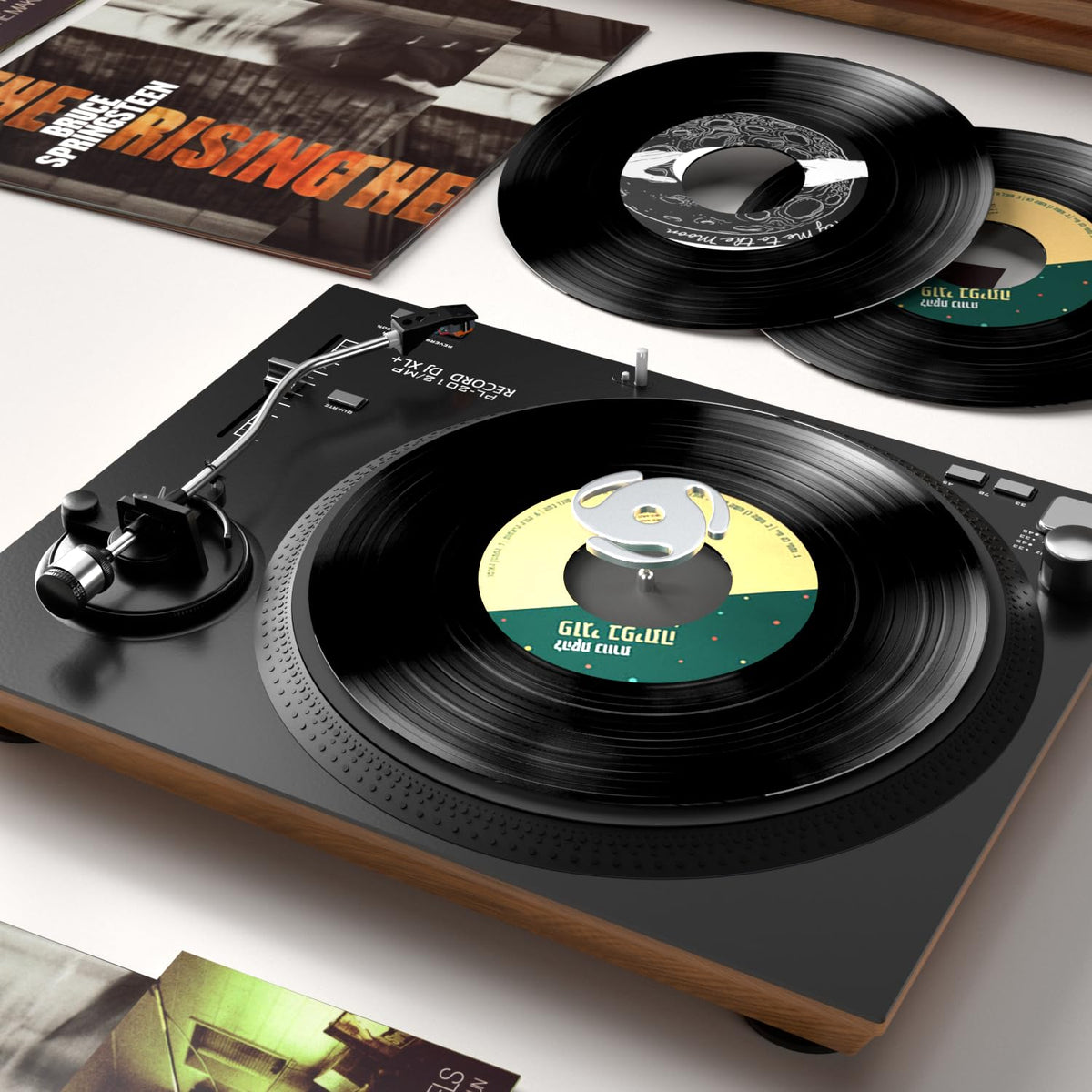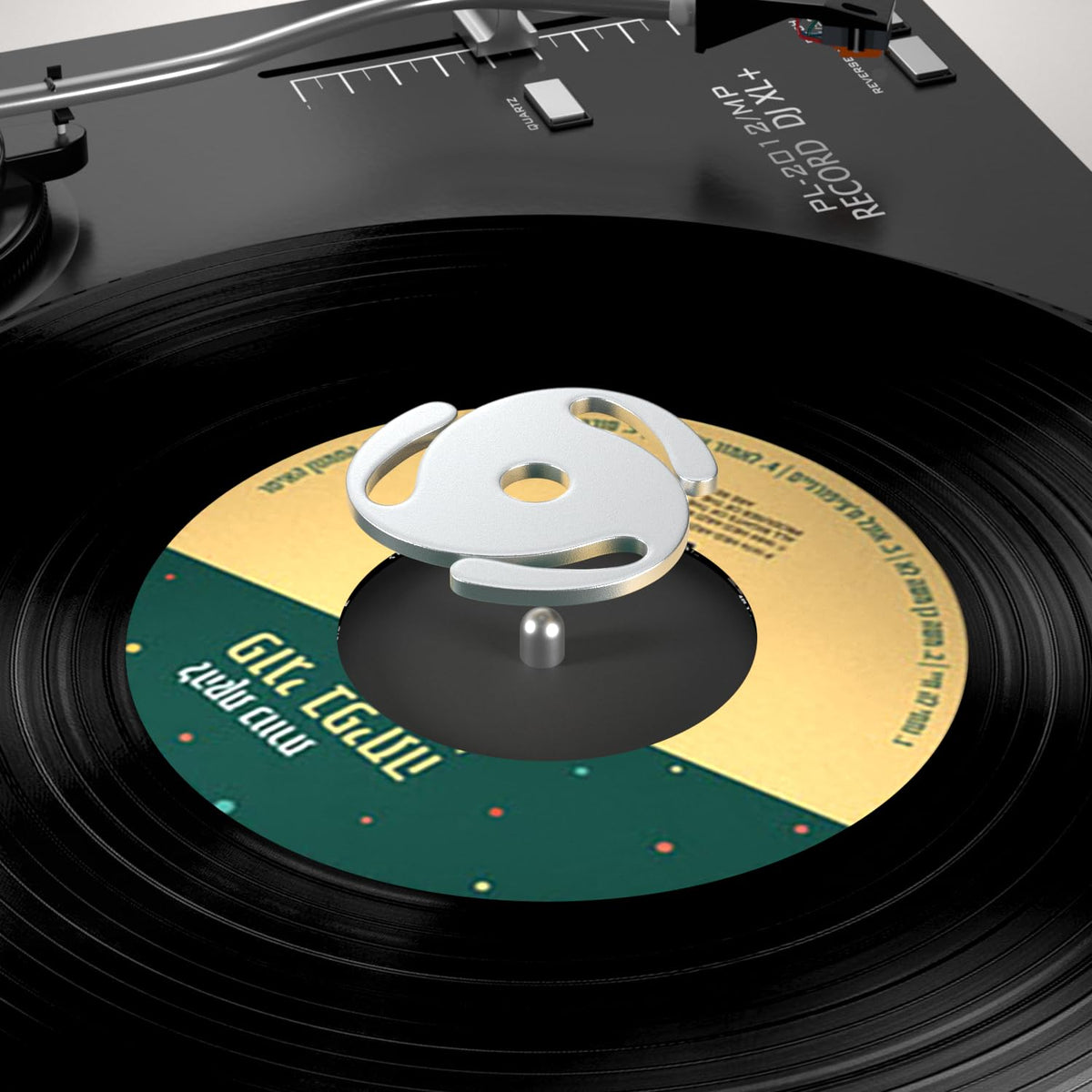 Q: How do I use the 45 RPM record adapter?A: Using the 45 RPM record adapter is simple. Just snap it into the center of your 7-inch vinyl record and place the record on your turntable spindle. No tools are required, and its lightweight design ensures stability during playback.