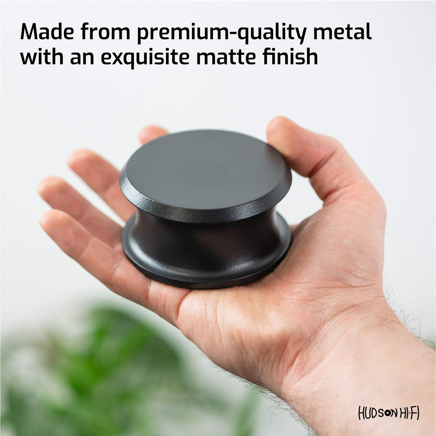 Here At Hudson Hi-Fi, We Are Committed To Delivering Quality, Precision-Made, High-Fidelity Turntable Accessories, And Unique Vinyl Display Solutions. We Exist For The Sole Purpose Of Elevating Your Listening Experience. Introducing, A Simple And Exceptionally Efficient Way To Improve The Harmonics Of Your Lps. Upgrade Your Turntable Setup With Our Vinyl Weight Stabilizer. This Device Makes An Immediate Impact On Your Listening Experience By Improving The Contact Between Your Record And The Platter. Unlike U Turn Cue Lever, Turntable Weight Clamp, And Record Clamp, This Turntable Weight Reduces The Transfer Of Unwanted Vibrations To The Stylus Effectively While Keeping Them Safe And Flat. The Reduction Of Extraneous Vibrations Reduces Distortion, Providing Better Detail, Tighter Bass, And Overall Improvement Of Sound Quality. By Stabilizing Rotational Speed, It Provides Pure Signal Retrieval And Realistic Sound Reproduction. The High-Quality Leather Protective Pad Serves As A Buffer Between The Record Weight And The Record, Keeping The Record Safe From Scratches And The Weight Distribution Perfectly Centered.