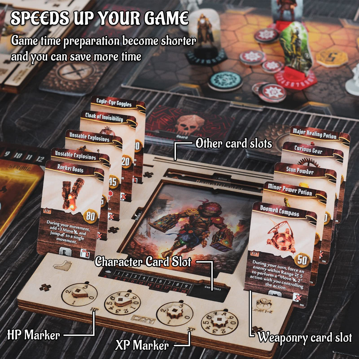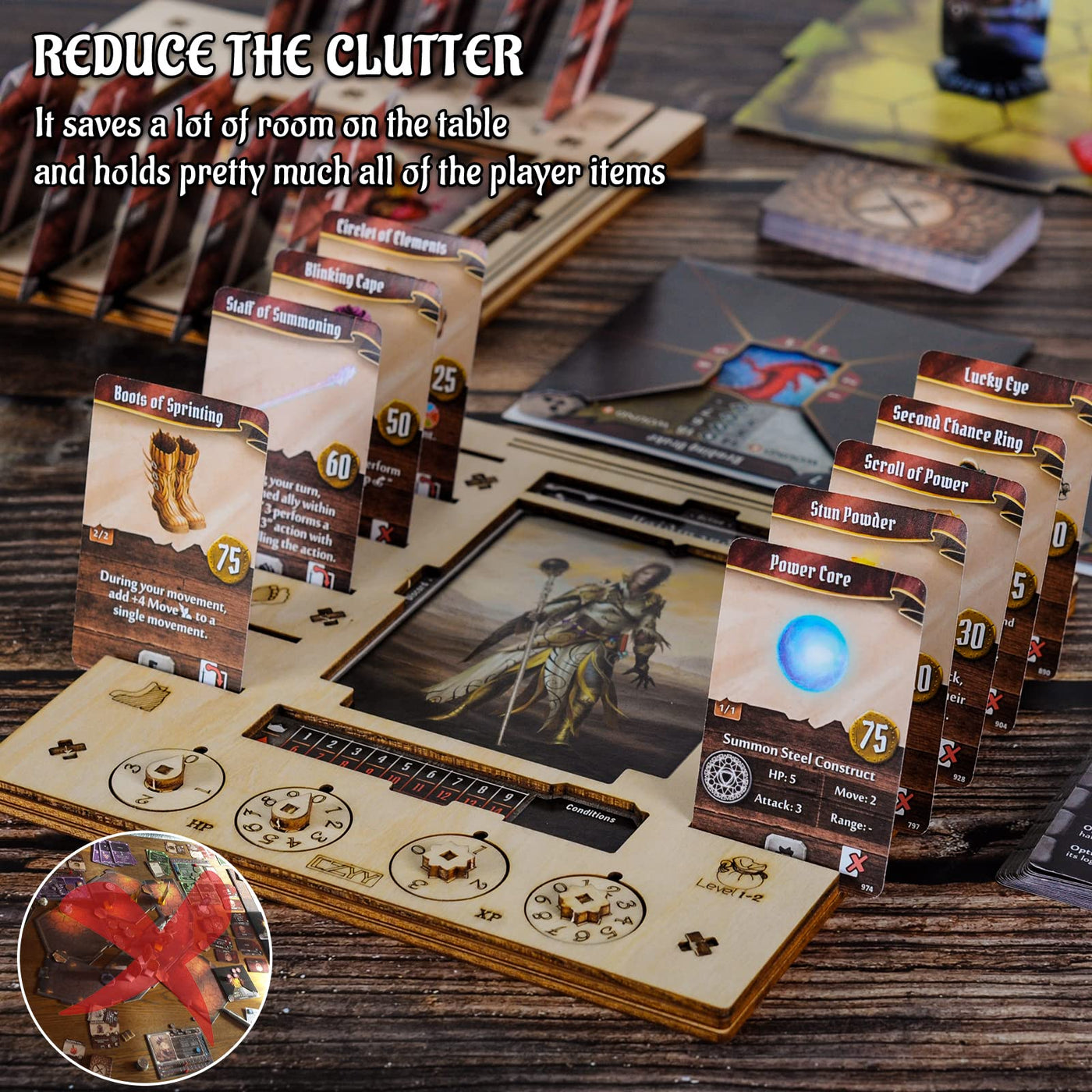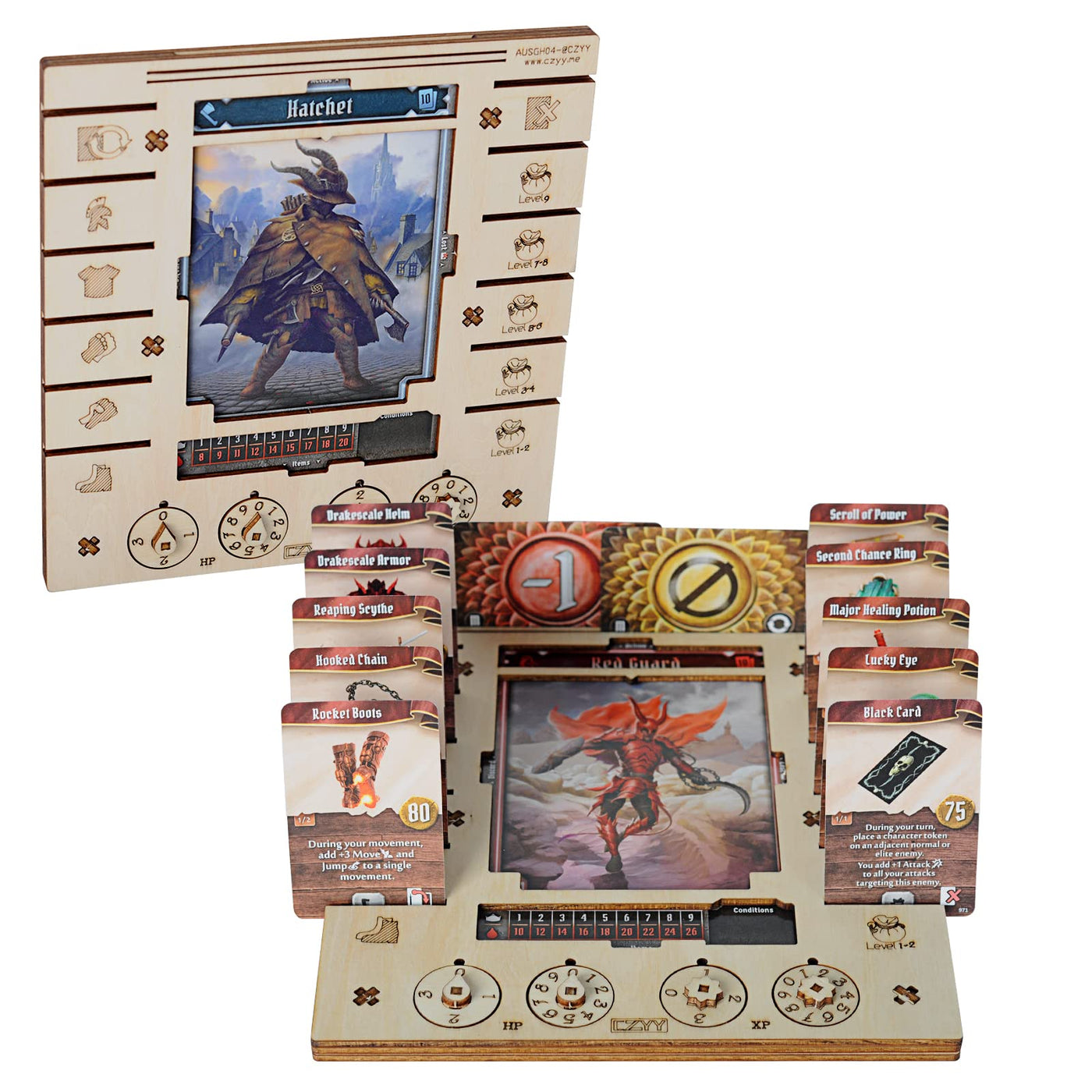 Are You Ready To Level Up Your Gloomhaven: Jaws Of The Lion Experience? Then This Is The Perfect Product For You! It Replaces Both Your Gloomhaven Player Card And Your Gloomhaven Health/Experience Tracker. You Can Slide Your Player Reference Card Underneath It For Reference, But You Won'T Need It On The Table. It Also Provides A Place For Your Attack Modifier Deck To Relax In For Easy Pulling/Reshuffling And A Place To Discard. It'S A Perfect Space-Saver For A Game That Tends To Congest The Table! Dimensions: 7.5'' Long X 7.1'' Wide X 0.3'' Thick Material: Laser Cut From High Qualiy Birch Plywood Package Included: 2 X Character Dashboard