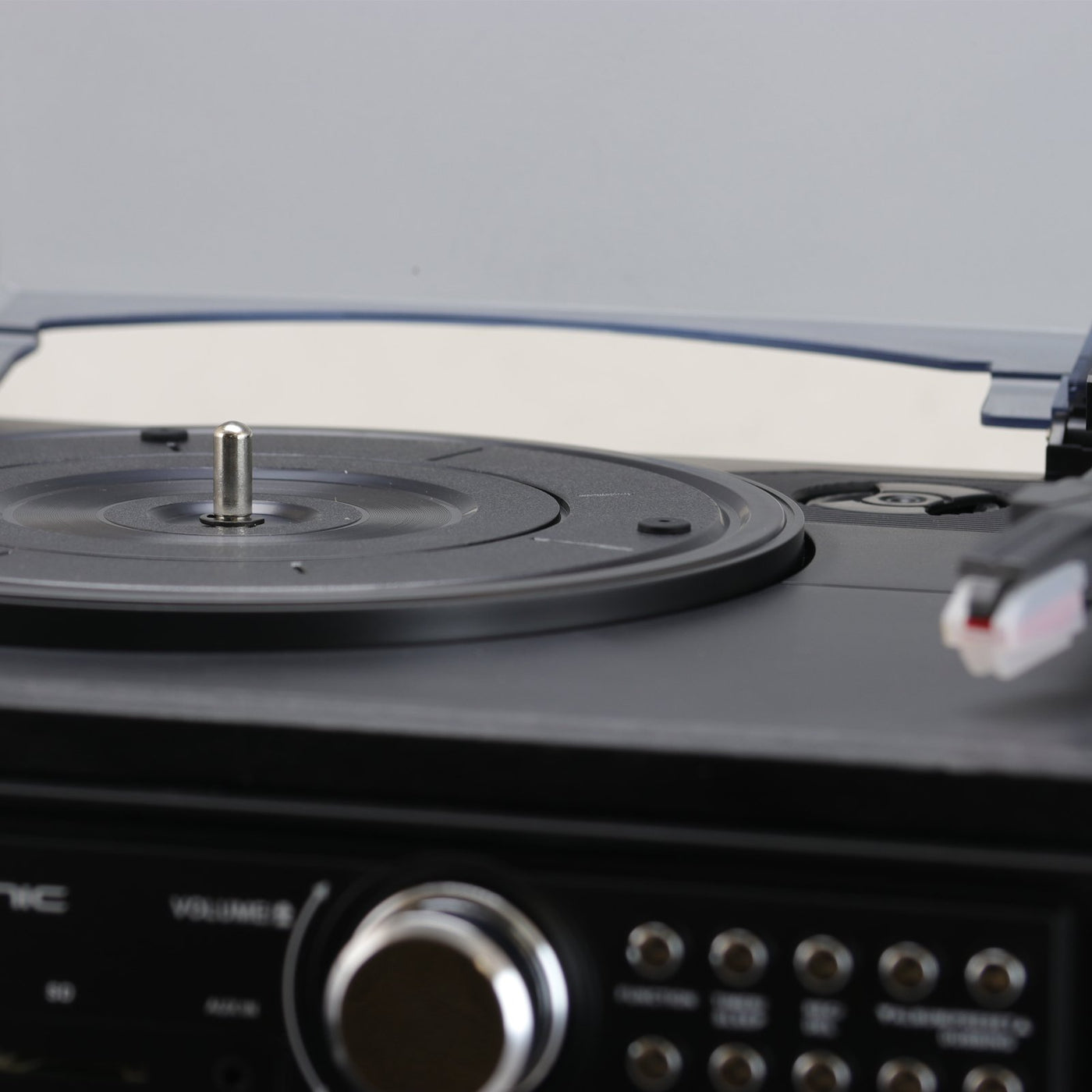 Q: What media formats can I play on the Trexonic 3-Speed Turntable?A: The Trexonic 3-Speed Turntable allows you to enjoy a variety of media formats, including vinyl records, CDs, cassette tapes, and digital music from USB flash drives and SD cards. It also connects to Bluetooth-enabled devices for streaming music wirelessly.