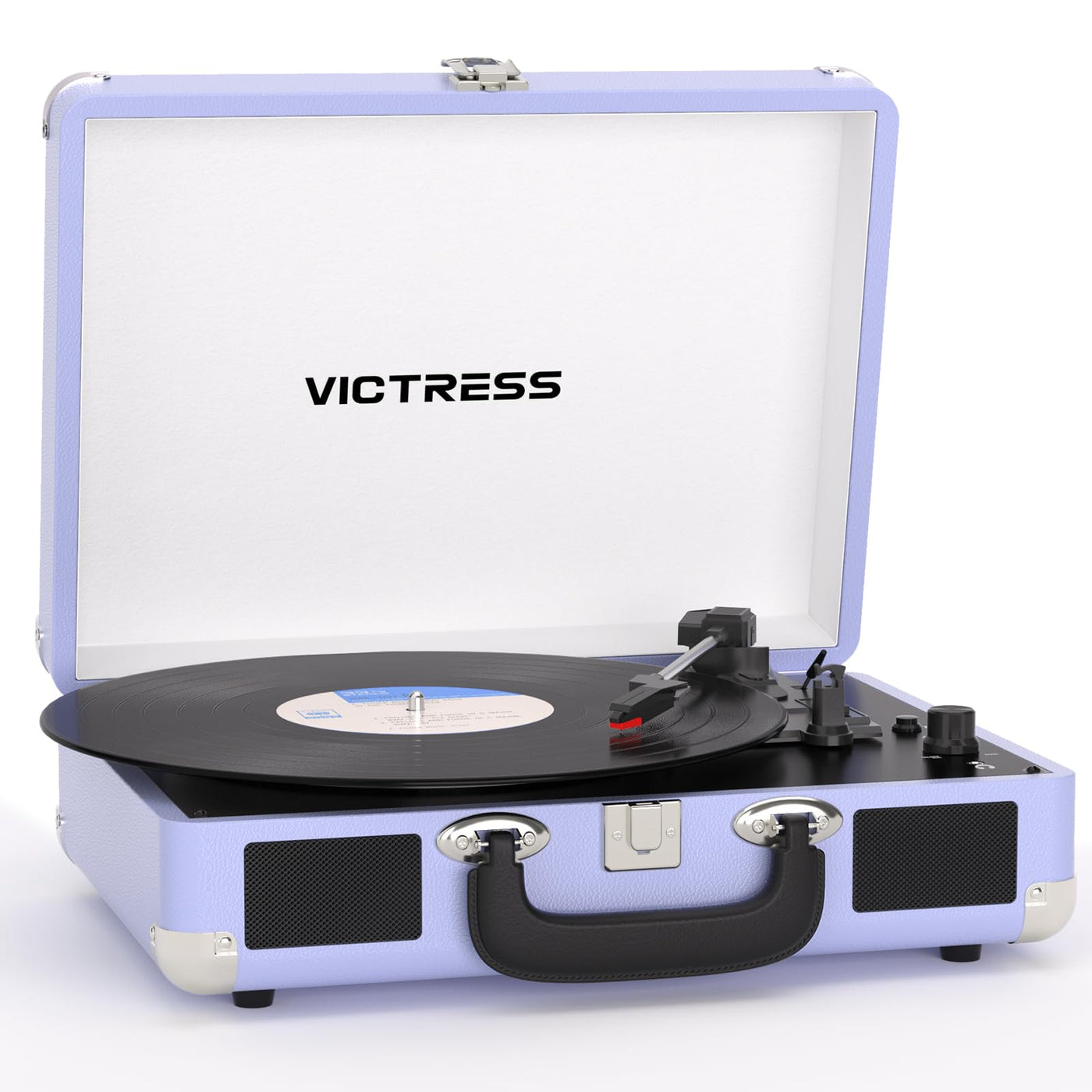 Step back in time while staying connected with the VICTRESS Purple Suitcase Record Player. Designed for todays music lovers, this vinyl record player combines vintage charm with modern features, making it the perfect choice for both beginners and vinyl collectors. Enjoy clear and powerful audio with dual stereo speakers built right in, boosting sound and volume by 30%. Want even more? Use the RCA port to connect to larger speakers, or enjoy private listening through the headphone jack. This portable record player adapts to your lifestyle. Stay wireless with Bluetooth. Stream music directly from your phone or tablet to the turntable, or send your vinyl playback out to Bluetooth speakers and headphones. The stable 33ft range ensures you never miss a beat. Play your entire collection with confidence. This turntable supports 33?, 45, and 78 RPM speeds across all record sizes, from small singles to full LPs. A belt-drive system and shock-absorbing feet reduce skipping, giving you smooth, uninterrupted sound. Preserve your music forever with built-in vinyl-to-digital conversion. Connect the record player Bluetooth turntable to your computer via USB and convert your albums into MP3 or WAV format, ready to save, share, or play on modern devices. Crafted with a wooden cabinet wrapped in premium PU leather, the suitcase record player is stylish, durable, stain-resistant, and water-resistant. Its sturdy metal handle and lightweight design make it easy to take anywhere. The elegant Purple finish makes it a standout addition to any room. Whether youre decorating your living space, enjoying a cozy evening, or looking for the perfect gift, this vinyl player is a versatile choice. Its ideal for birthdays, holidays, and special moments, offering both nostalgia and convenience. The VICTRESS Turntable is more than just a music player-its a way to connect with the past while embracing the present. Bring your vinyl collection to life, share music with loved ones, and enjoy the beauty of analog sound in a modern, portable design.